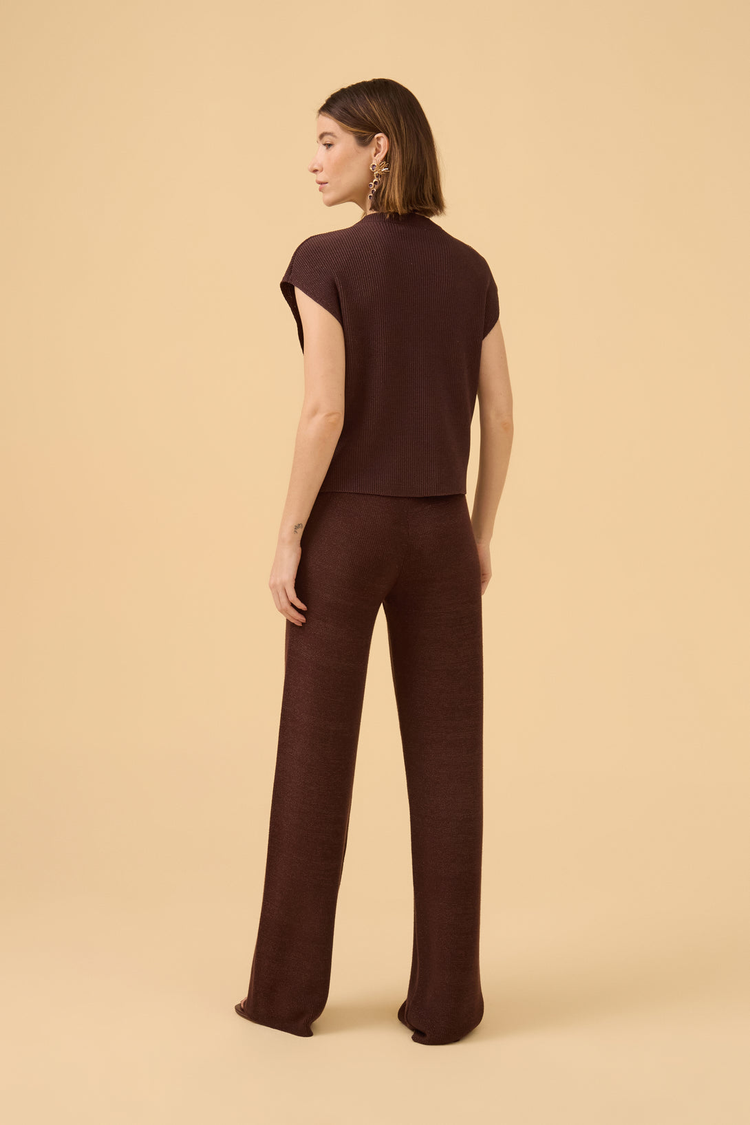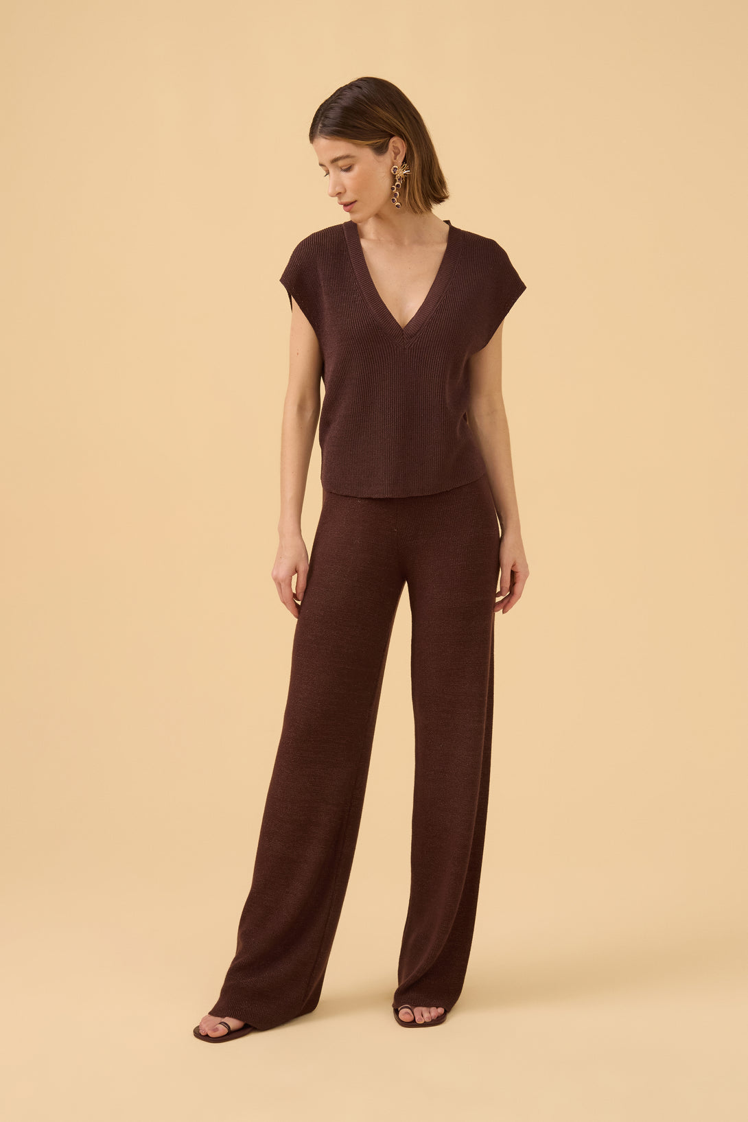 Calça Detalhe Lurex Em Tricot Dark Brown