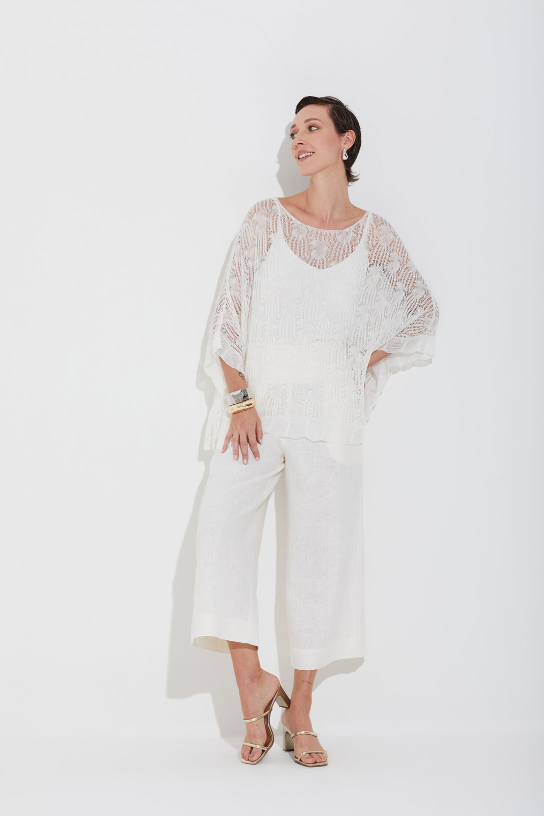 OUTRAS CORES:: Calça Linho Puro Wide Leg Off White