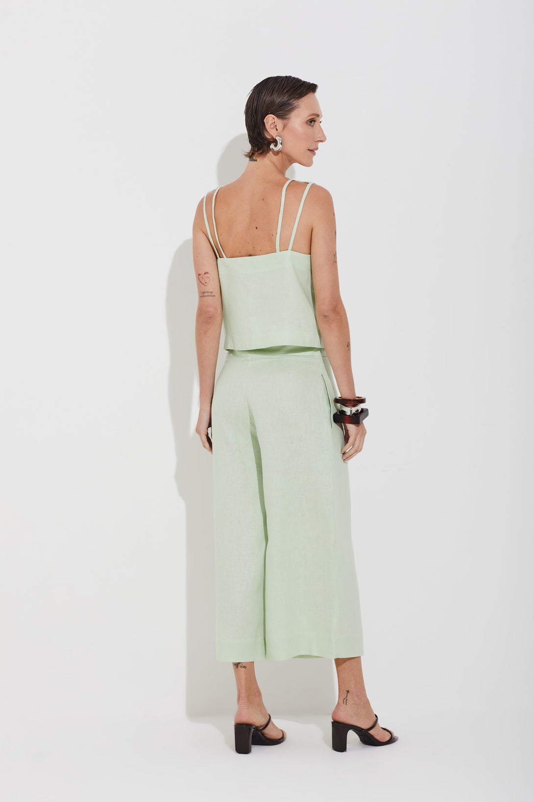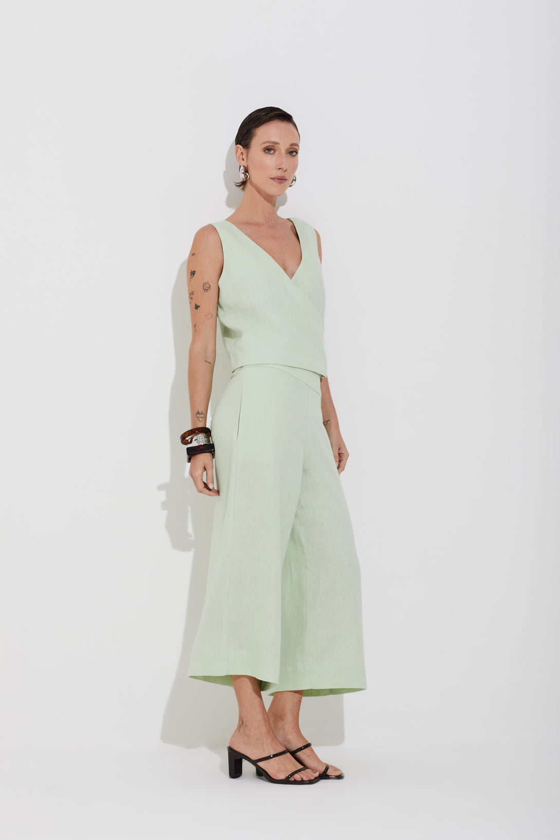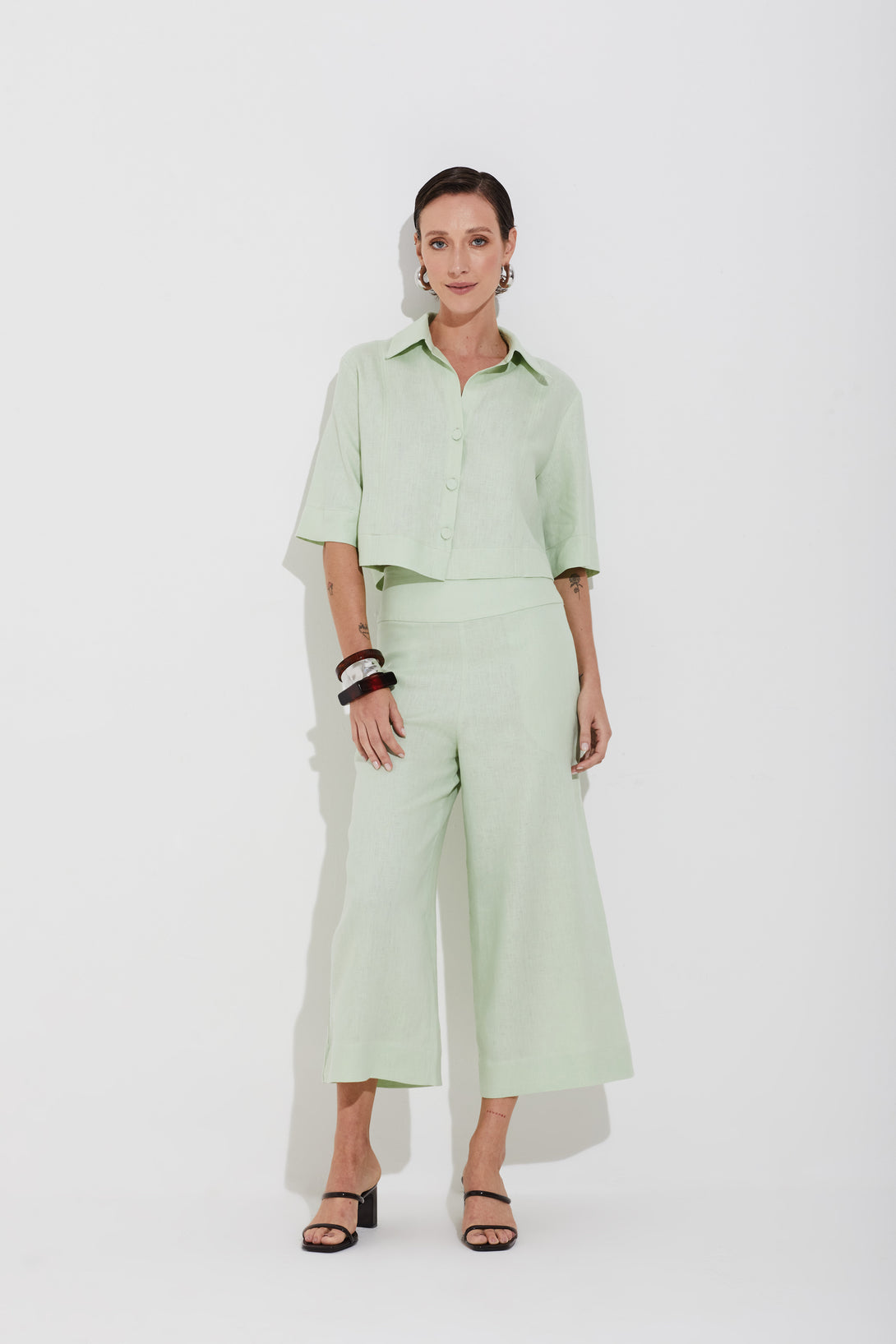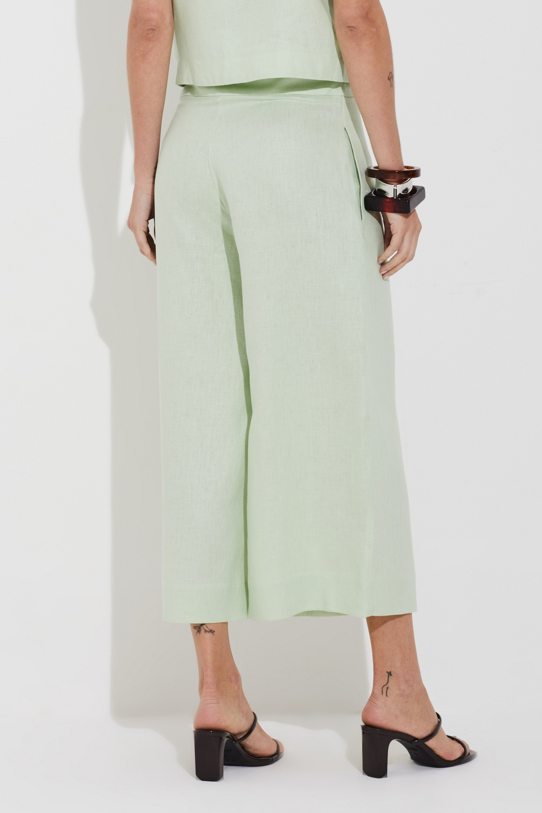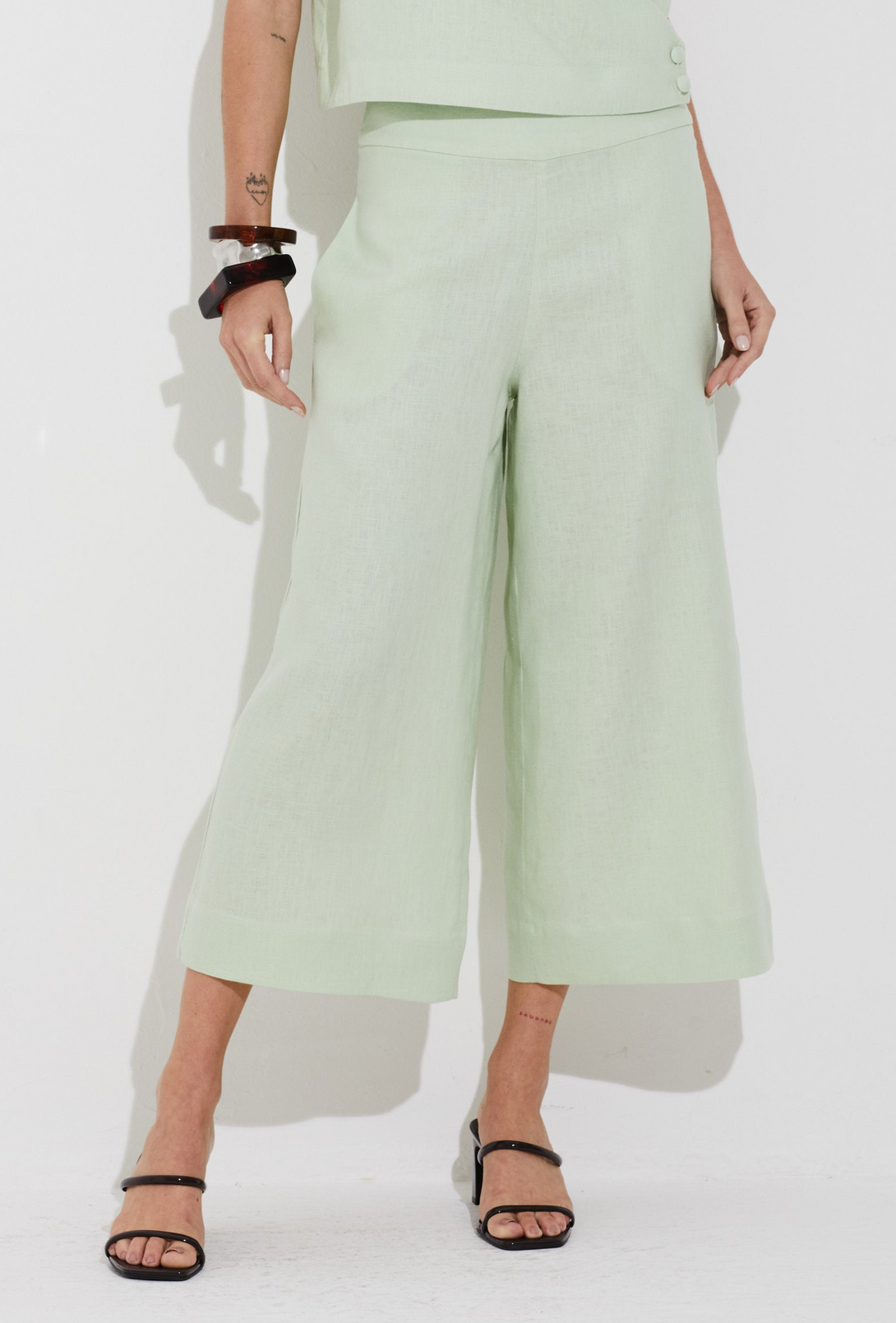 Calça Linho Puro Wide Leg Verde Claro