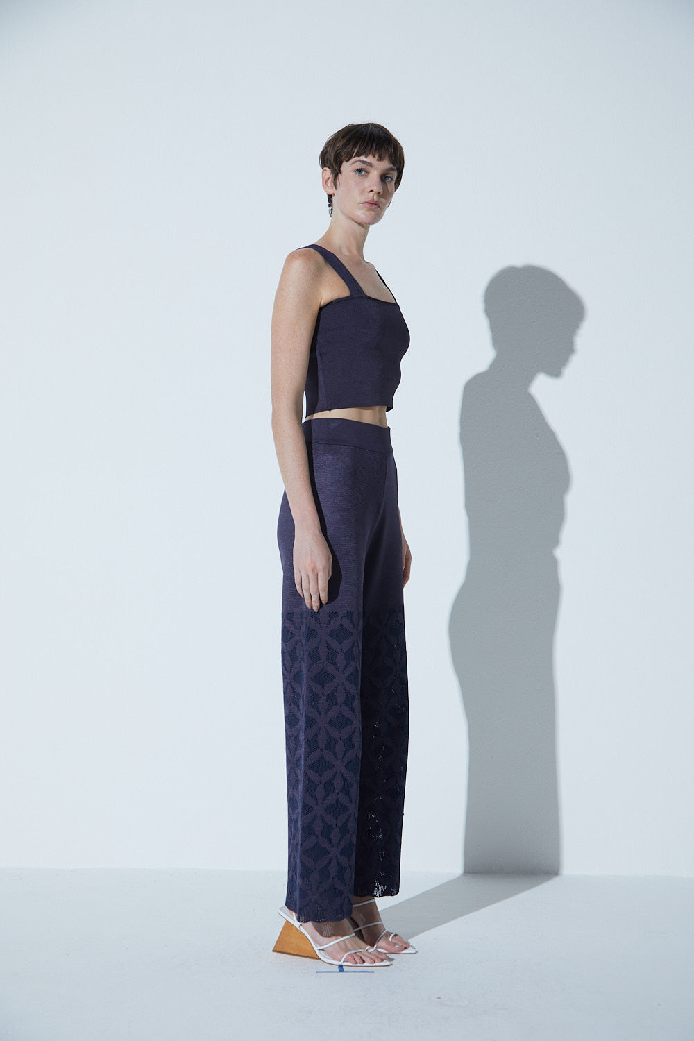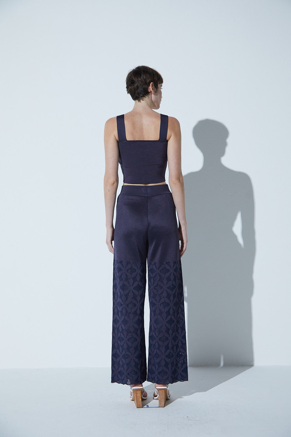 A Calça Em Tricot Cobogó Azul Marinho é ideal para quem busca elegância e caimento perfeito. Confeccionada em tricot de viscose com modelagem reta e cintura alta para maior conforto. Os desenhos em jacquard com vazados estrategicamente localizados, inspirados nos cobogós da arquitetura sessentista, nos trazem tricots com estrutura, brilho sutil e muita elegância.