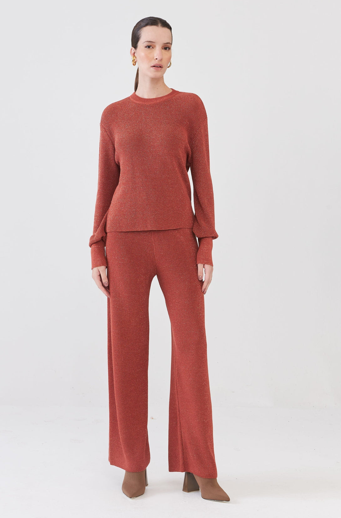 Com o acabamento de brilho e o conforto do tricot, a Calça Rib Brilho Sadie Brown é a escolha perfeita para um look elegante e moderno. O tricot é macio e resistente, proporcionando conforto e estilo para qualquer ocasião.