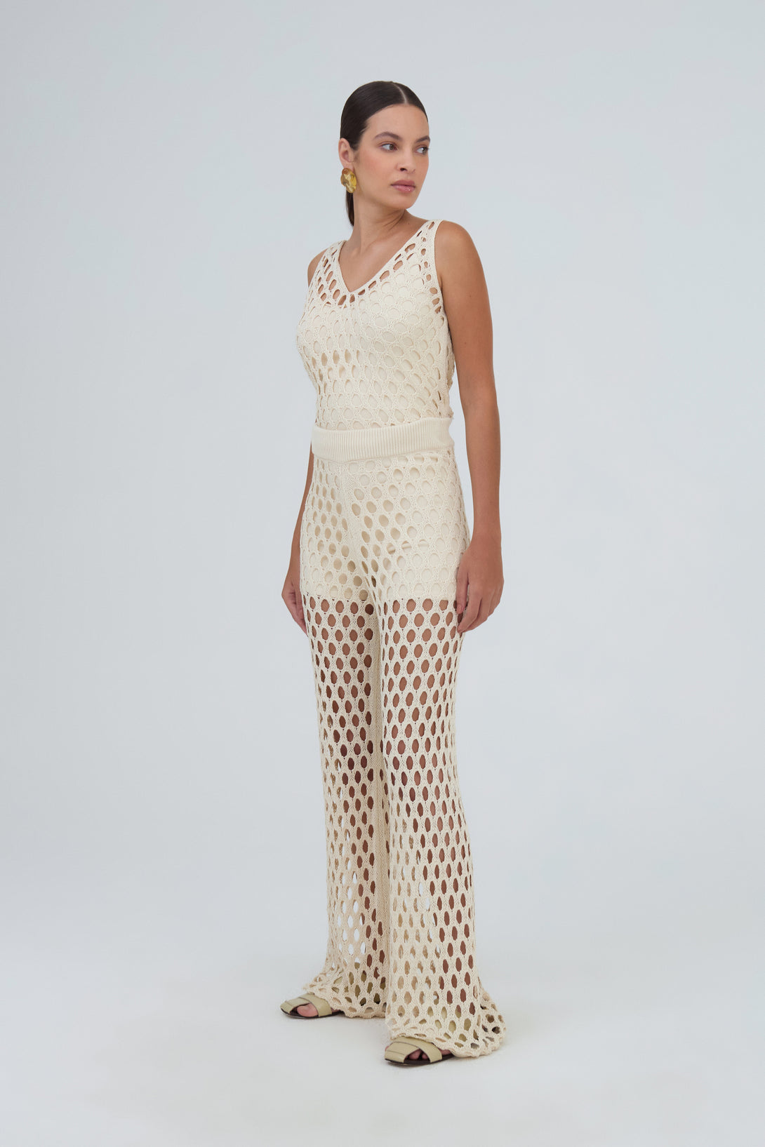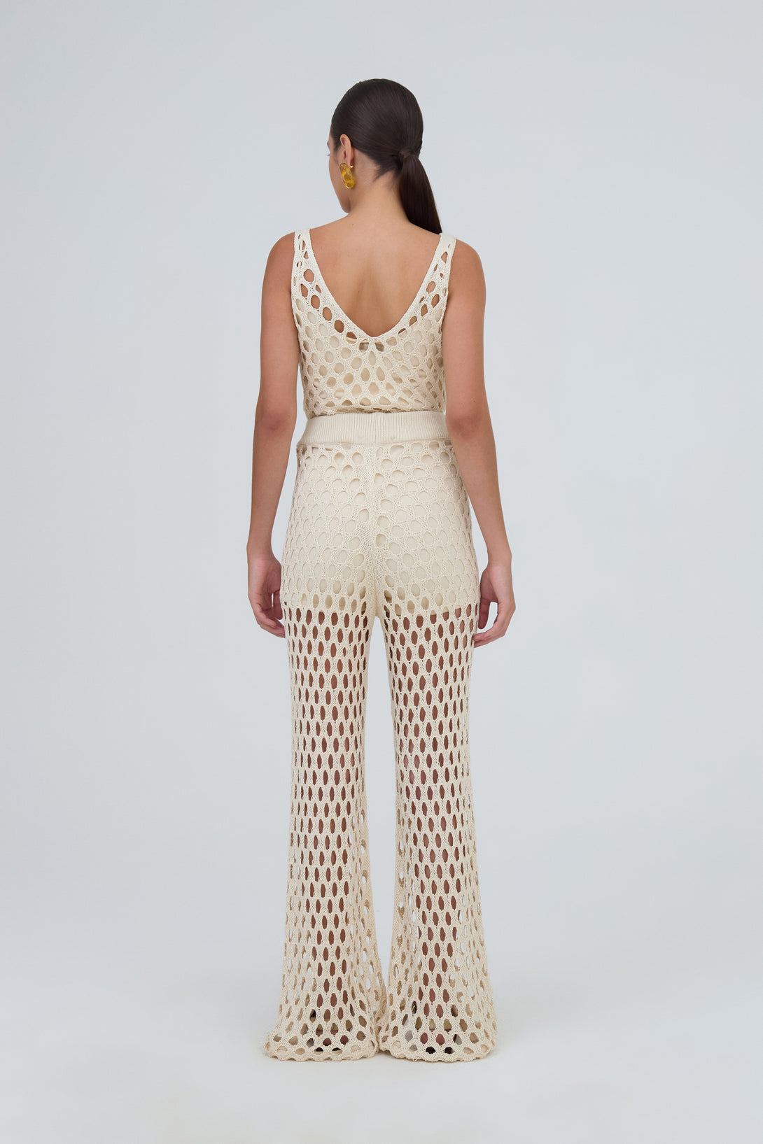 Calça Flare Maxi Furos Em Tricot Ninive