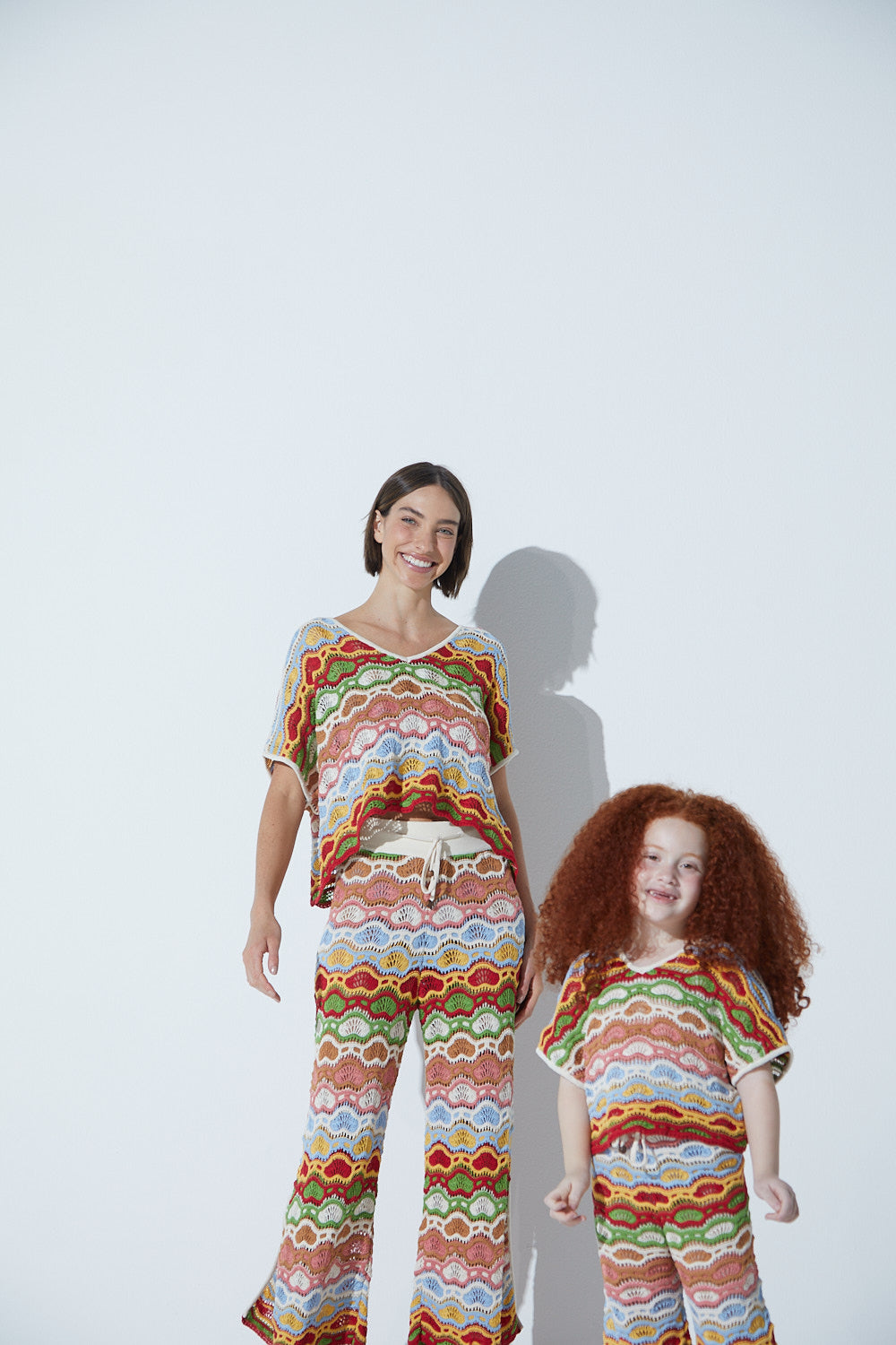 Calça Infantil Em Tricot Mix Tropical Vibrante