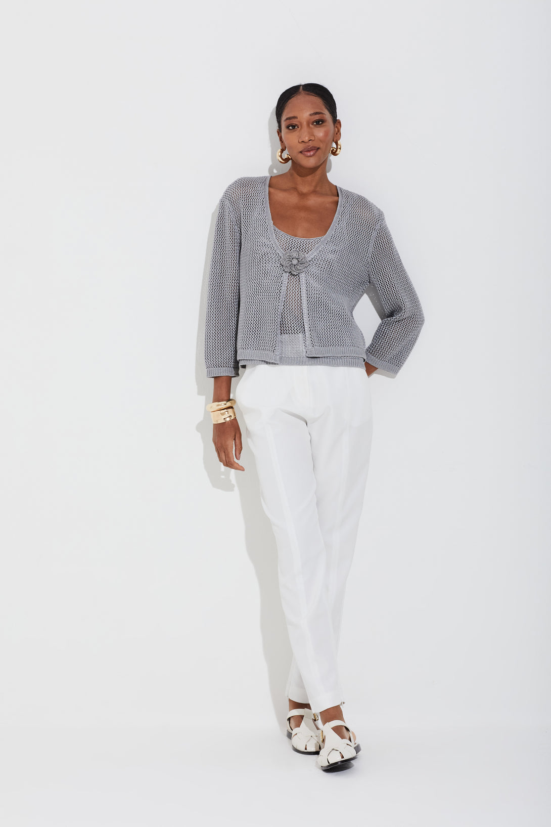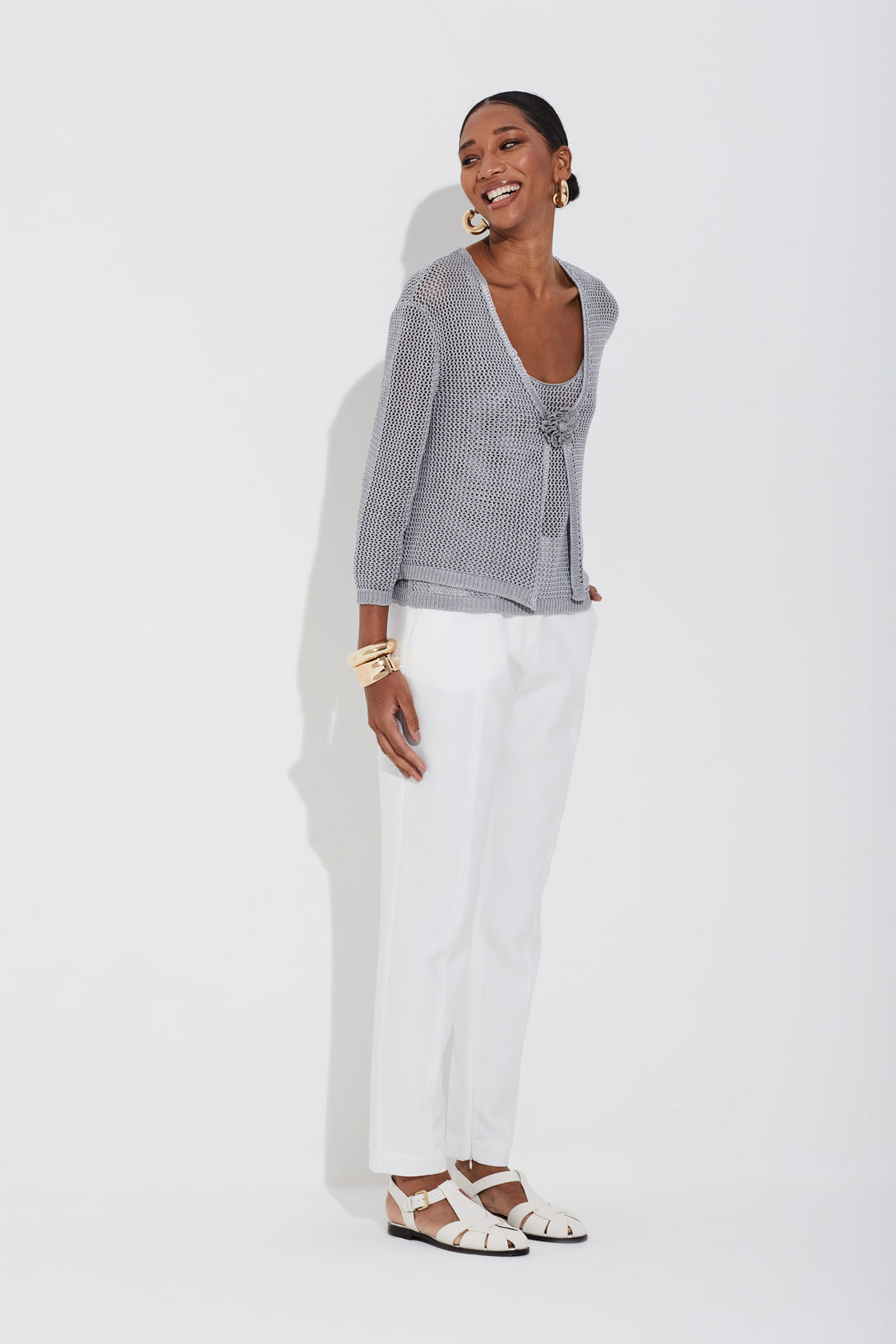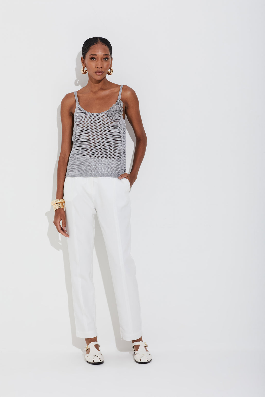• Cintura alta e pernas ajustadas