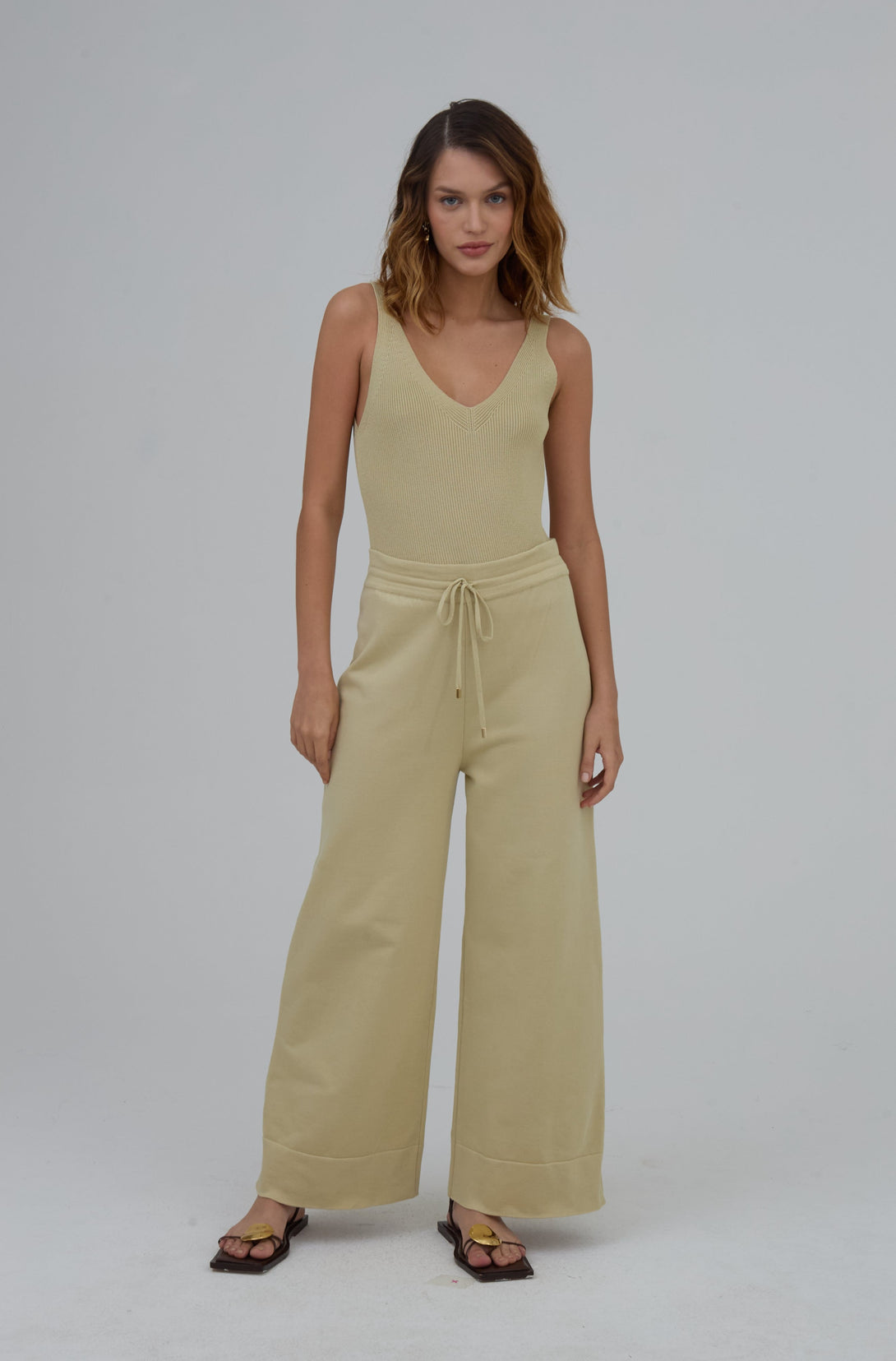 A Calça Reta em Tricot VF Essencial é produzida com fio de Vortex. A peça possui amarração frontal e caimento solto ao corpo. Ideal para combinar com outras peças da coleção.