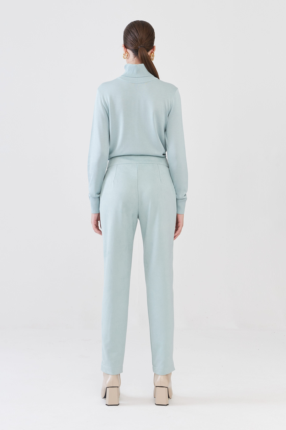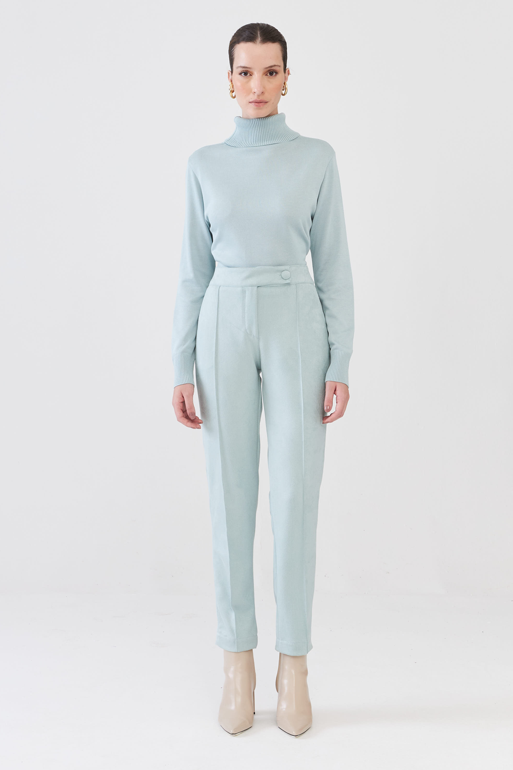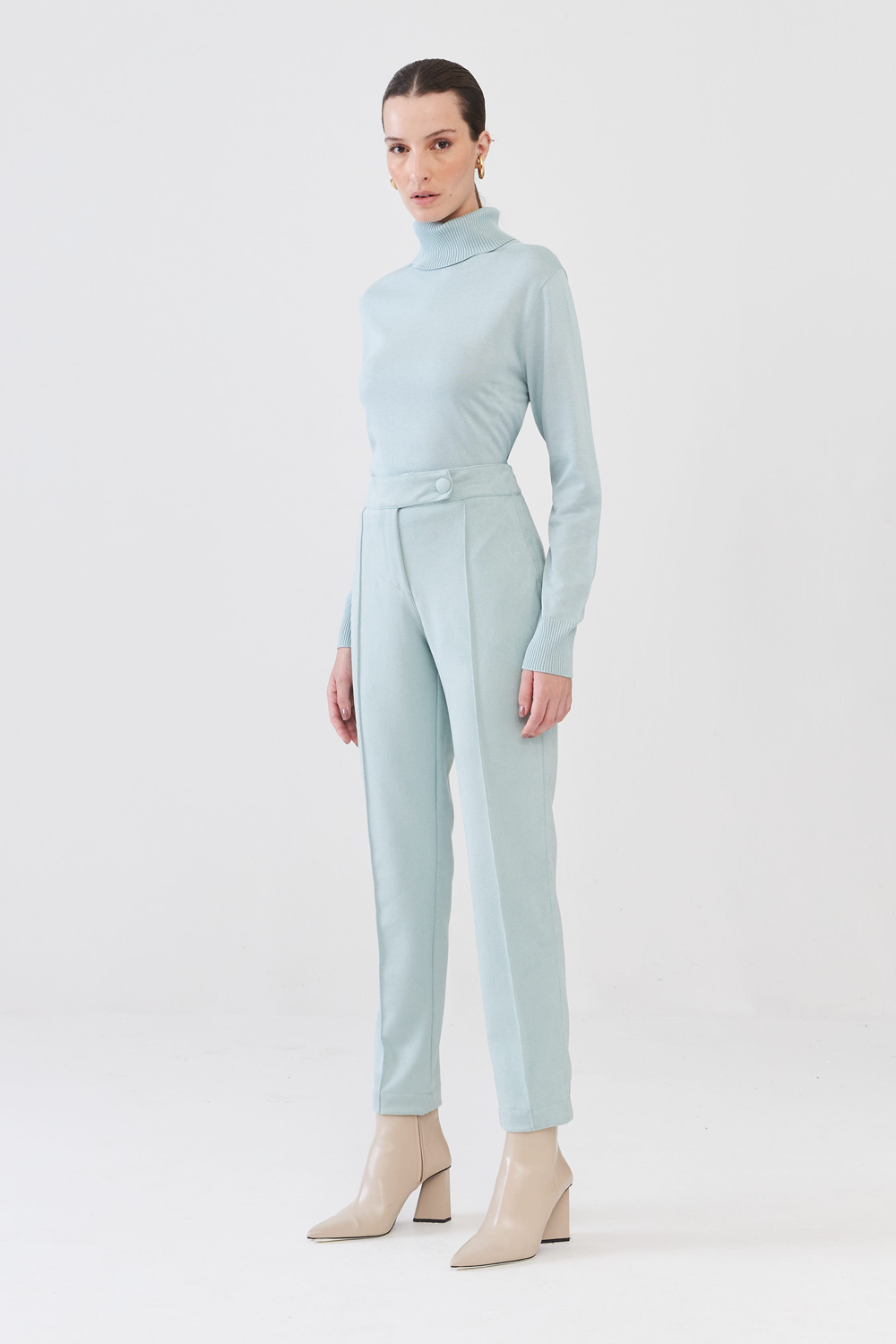 Calça Reta Com Nervuras Em Malha Quartzo Verde