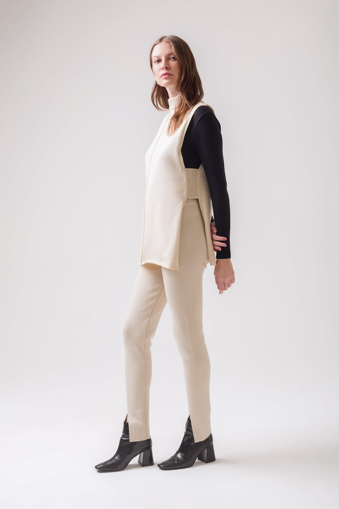 Calça Skinny Em Tricot Com Fenda Na Barra Ninive