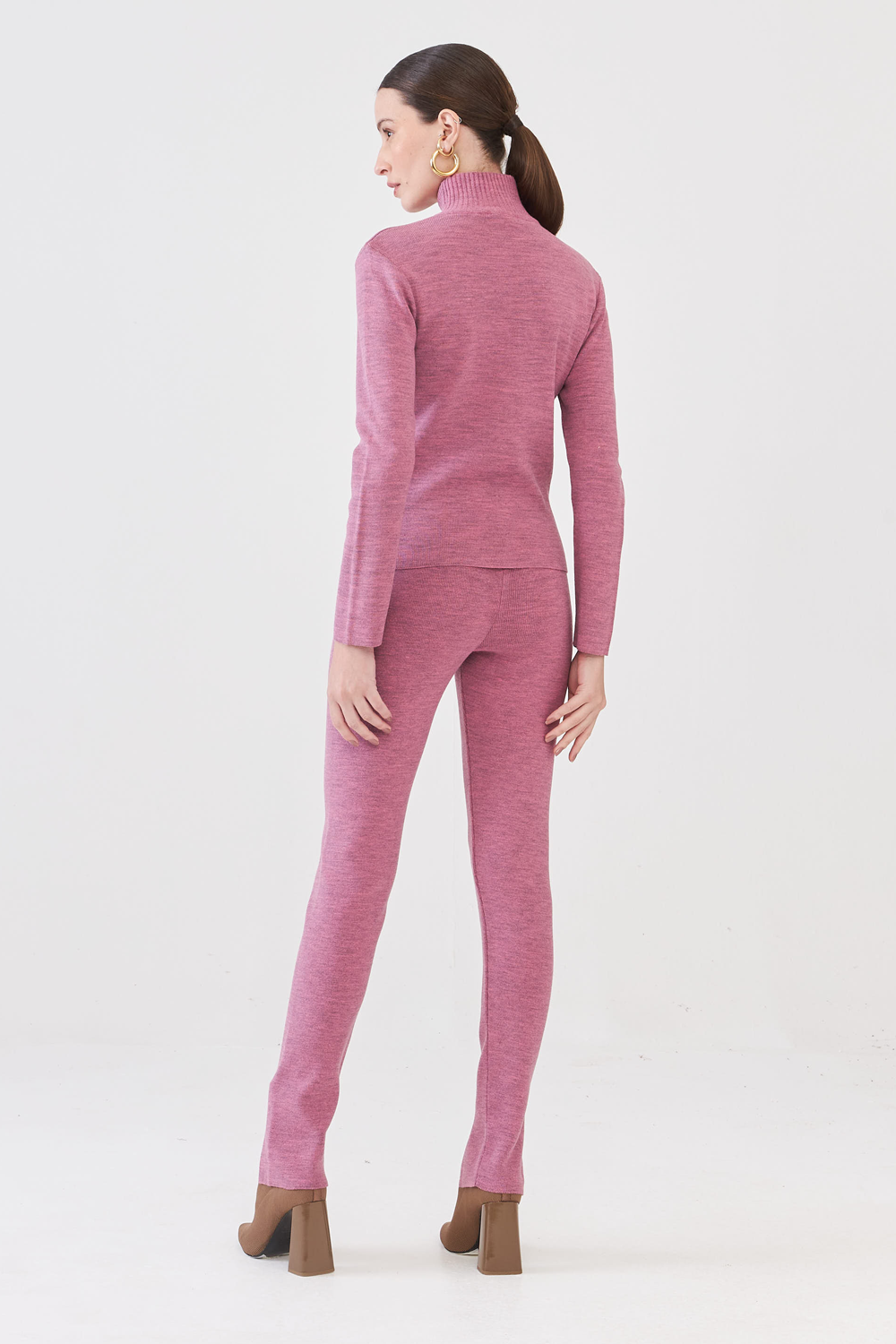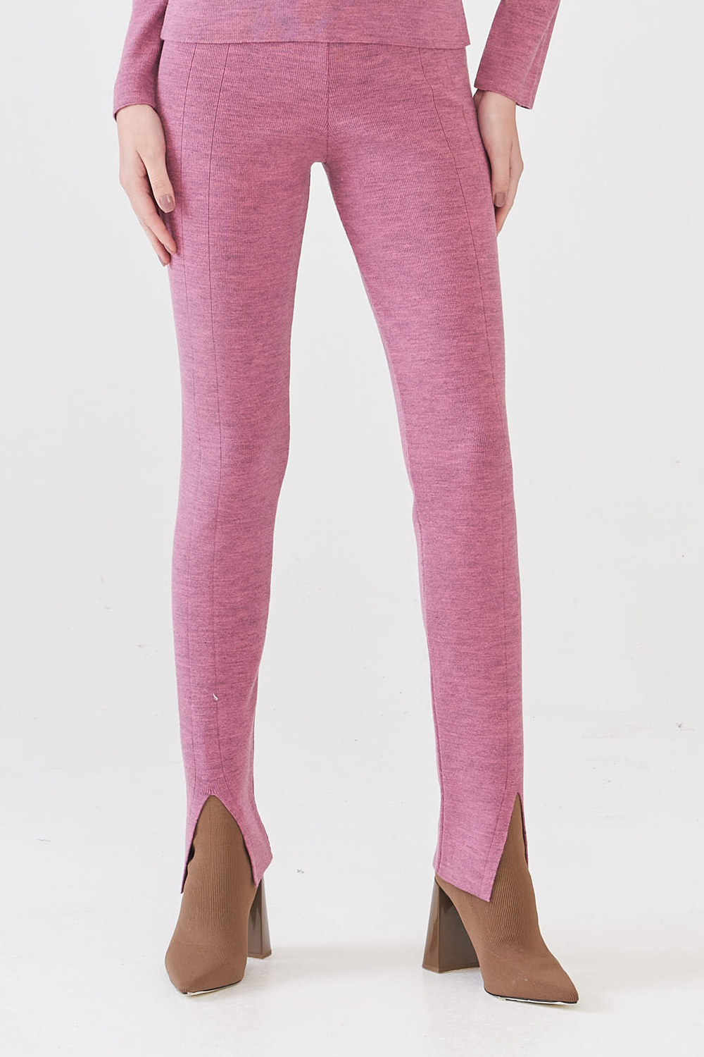 Calça Skinny Em Tricot Com Fenda Na Barra