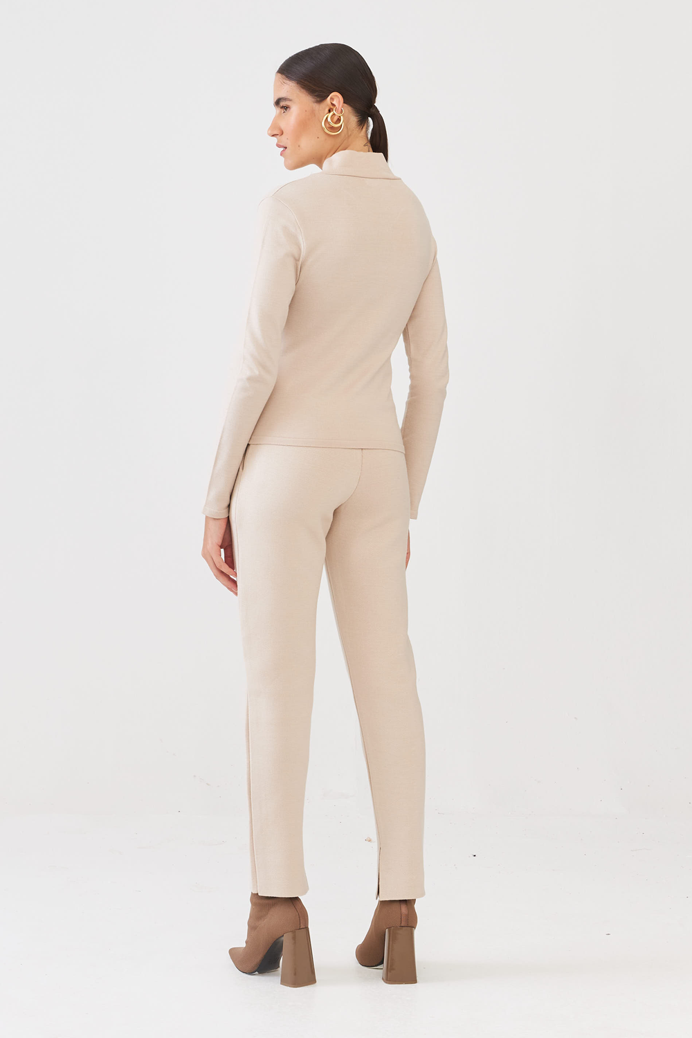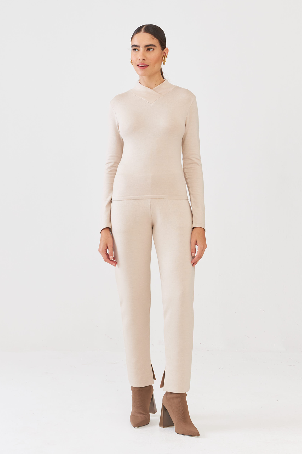 A Calça Slim Com Fenda Em Tricot é uma peça elegante e moderna que combina conforto e estilo. Feita em tecido tricot, possui um caimento slim que valoriza a silhueta, além de uma fenda na barra que adiciona um toque ousado. Ideal para compor looks sofisticados e versáteis.