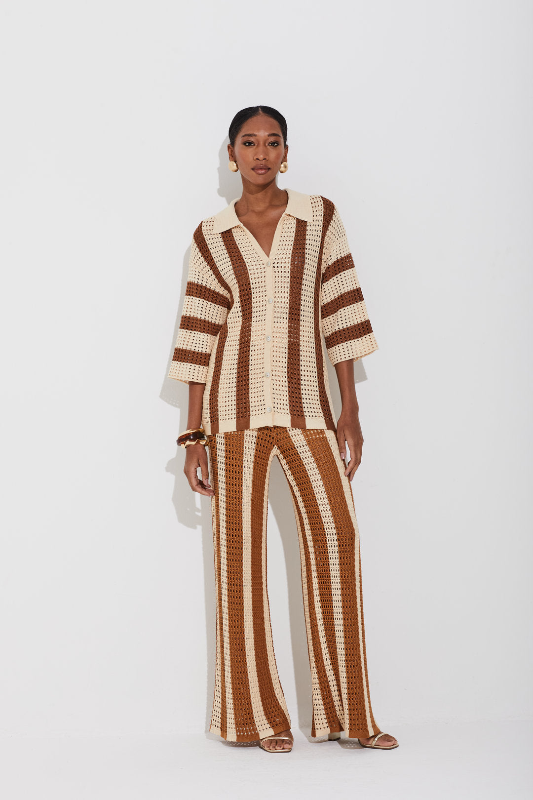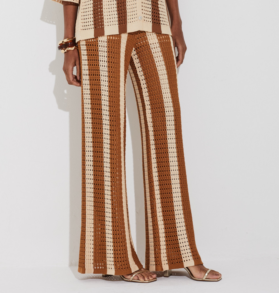 Calça Tricot Listrado Rústico Ambar Terroso/bege Champagne