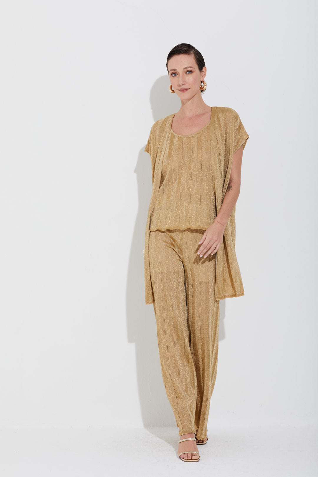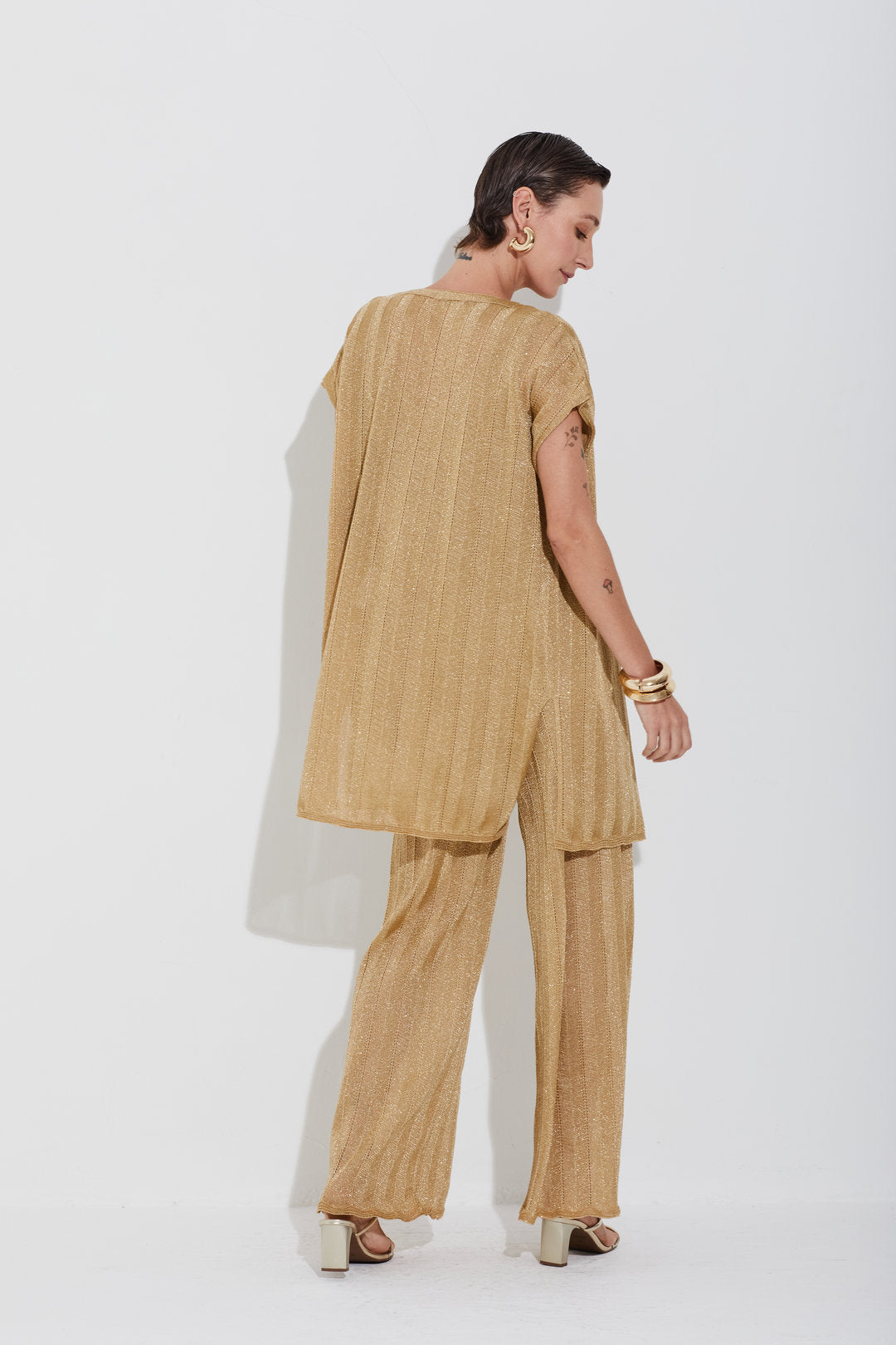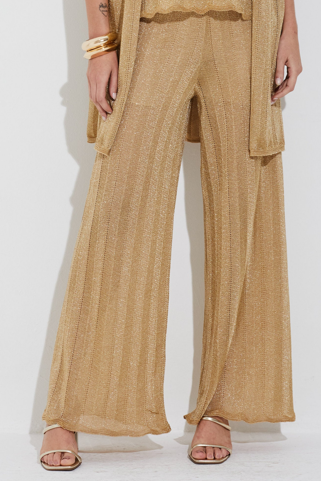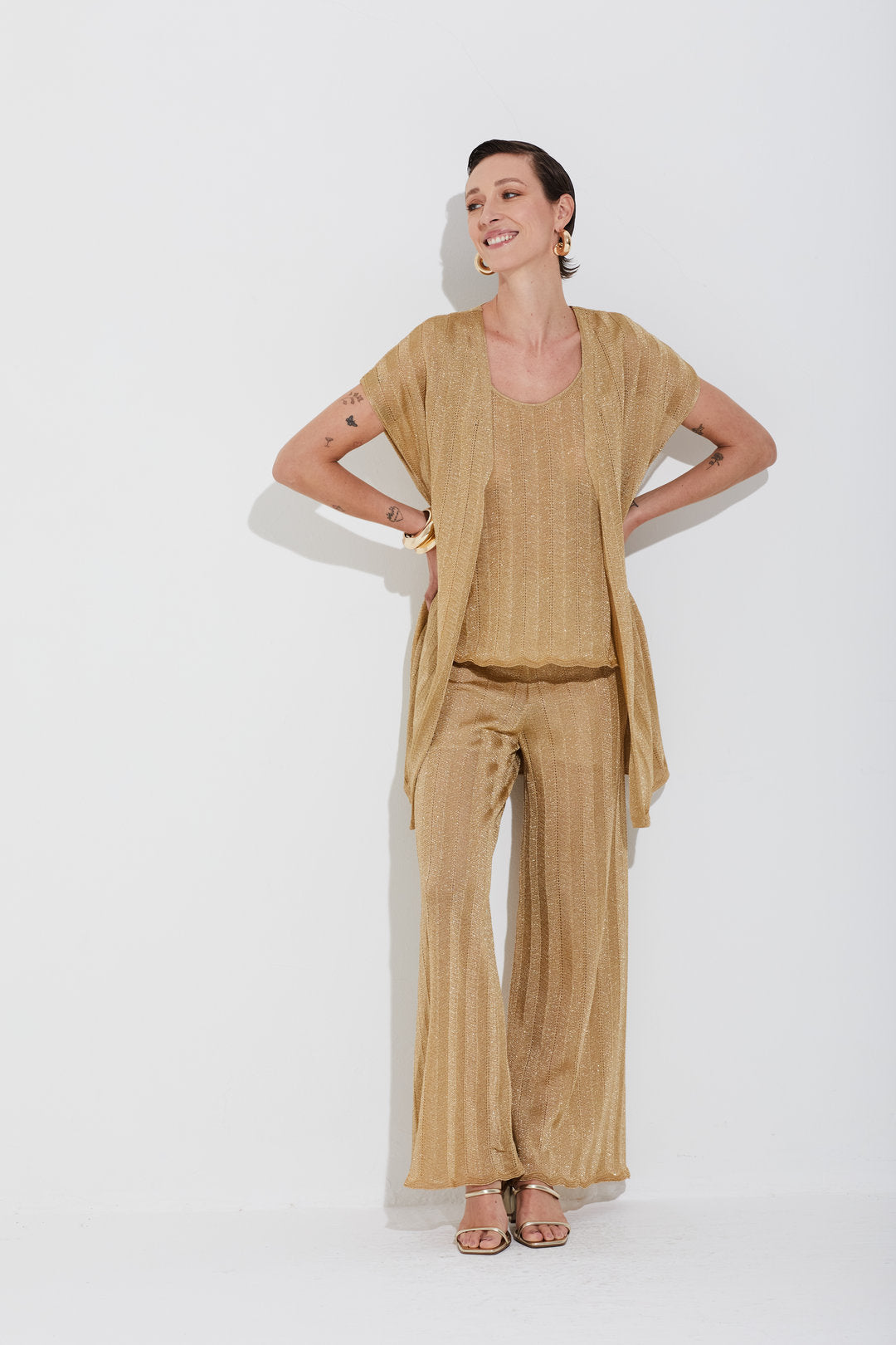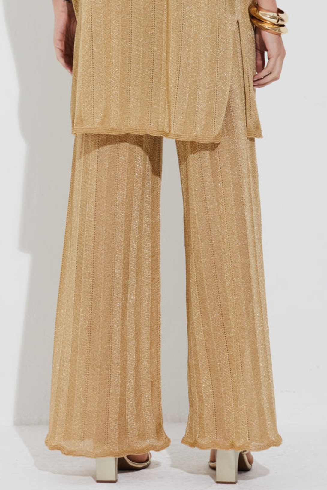 Calça Tricot Ponto Chevron Com Lurex Dourado