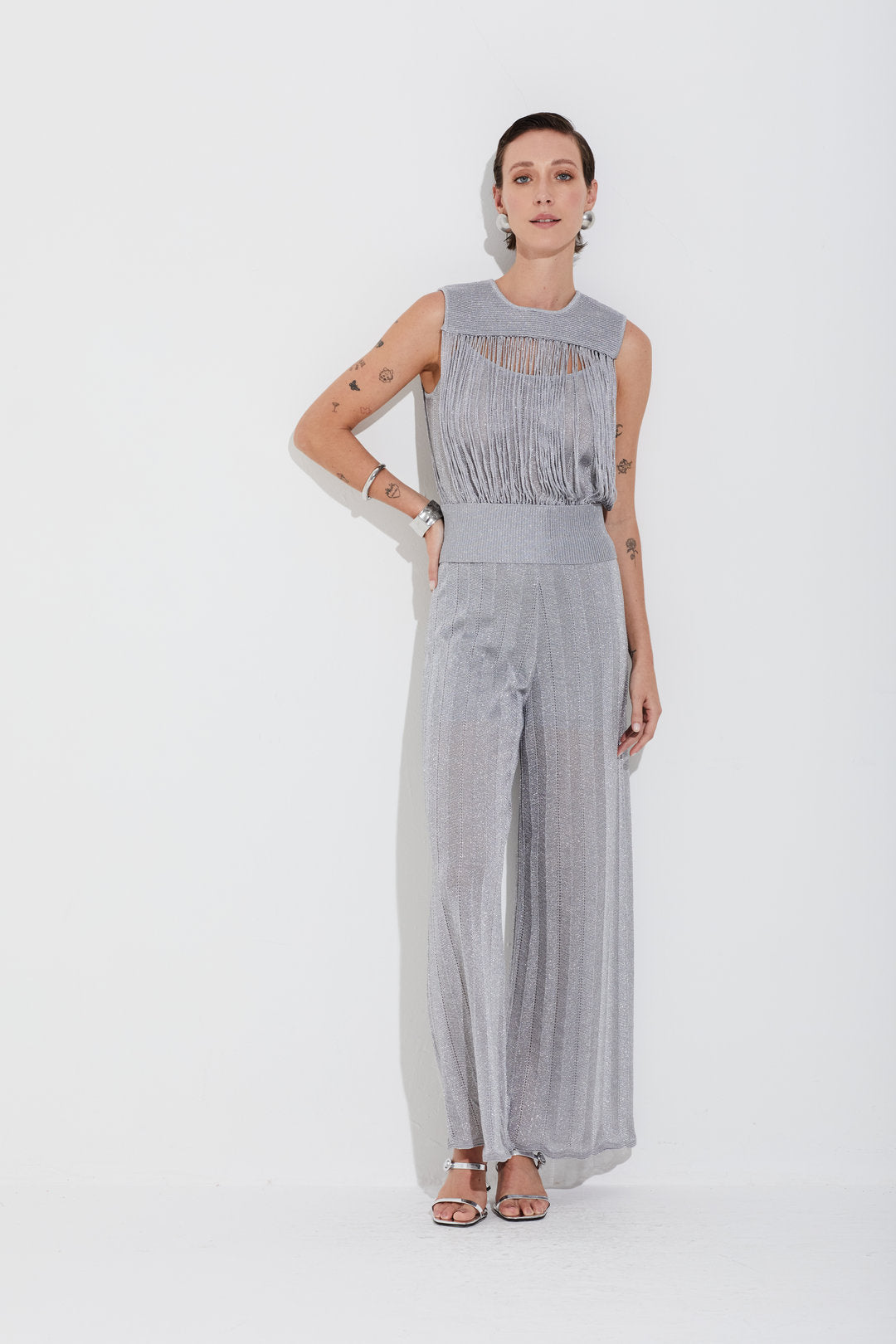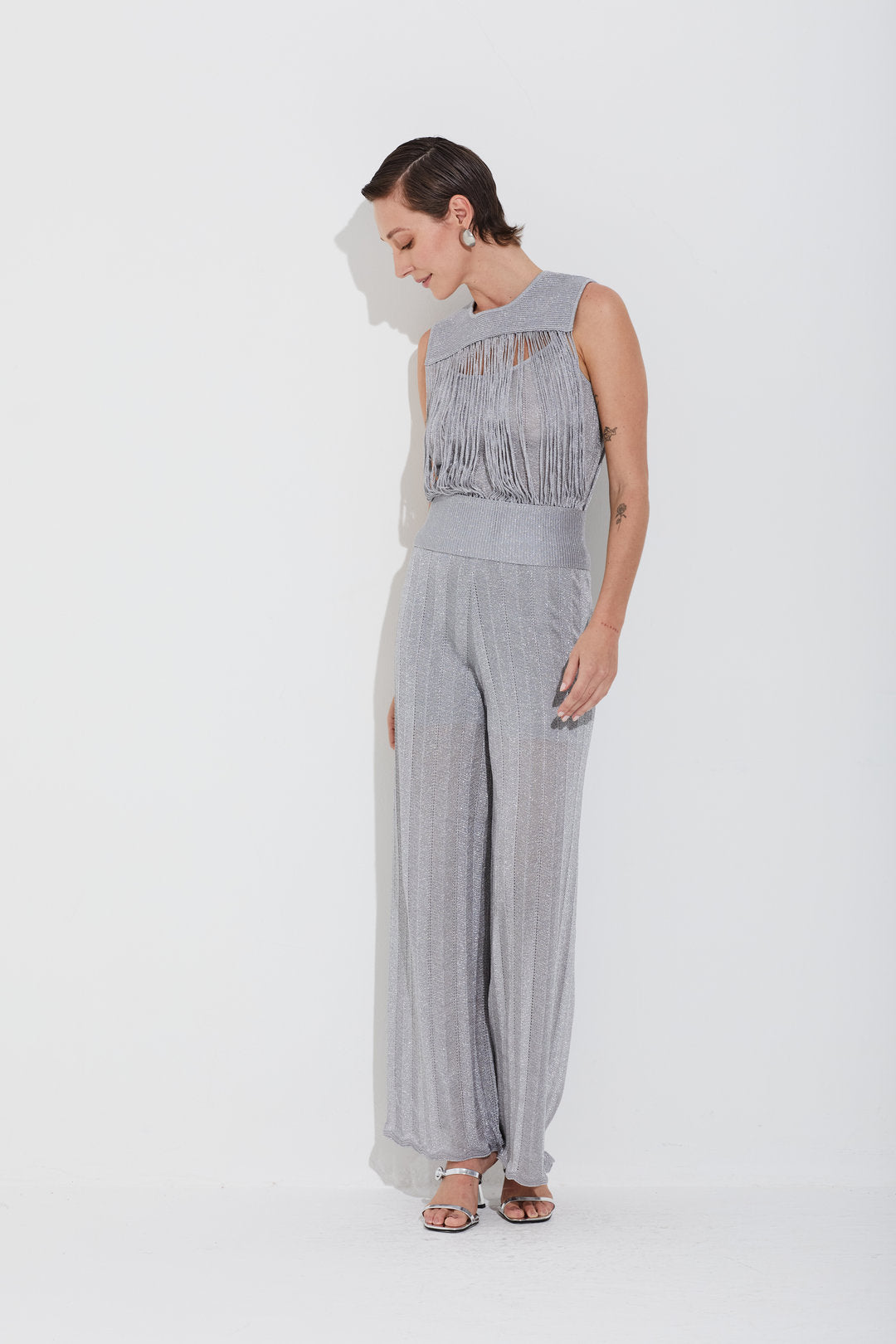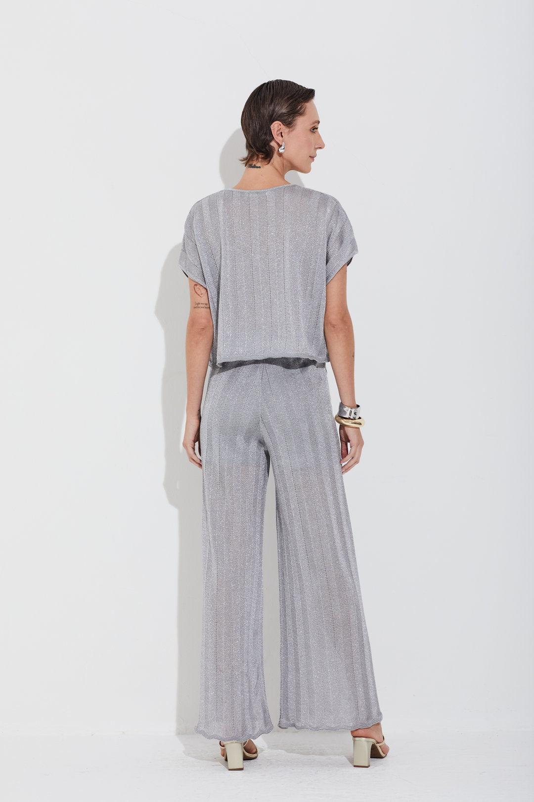 Calça Tricot Ponto Chevron Com Lurex Prata