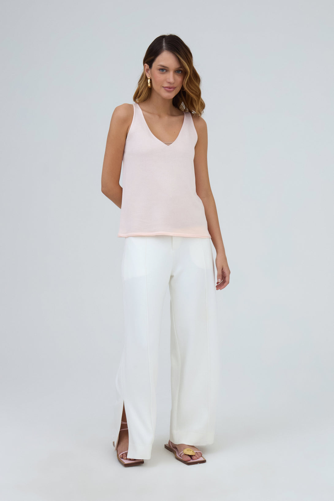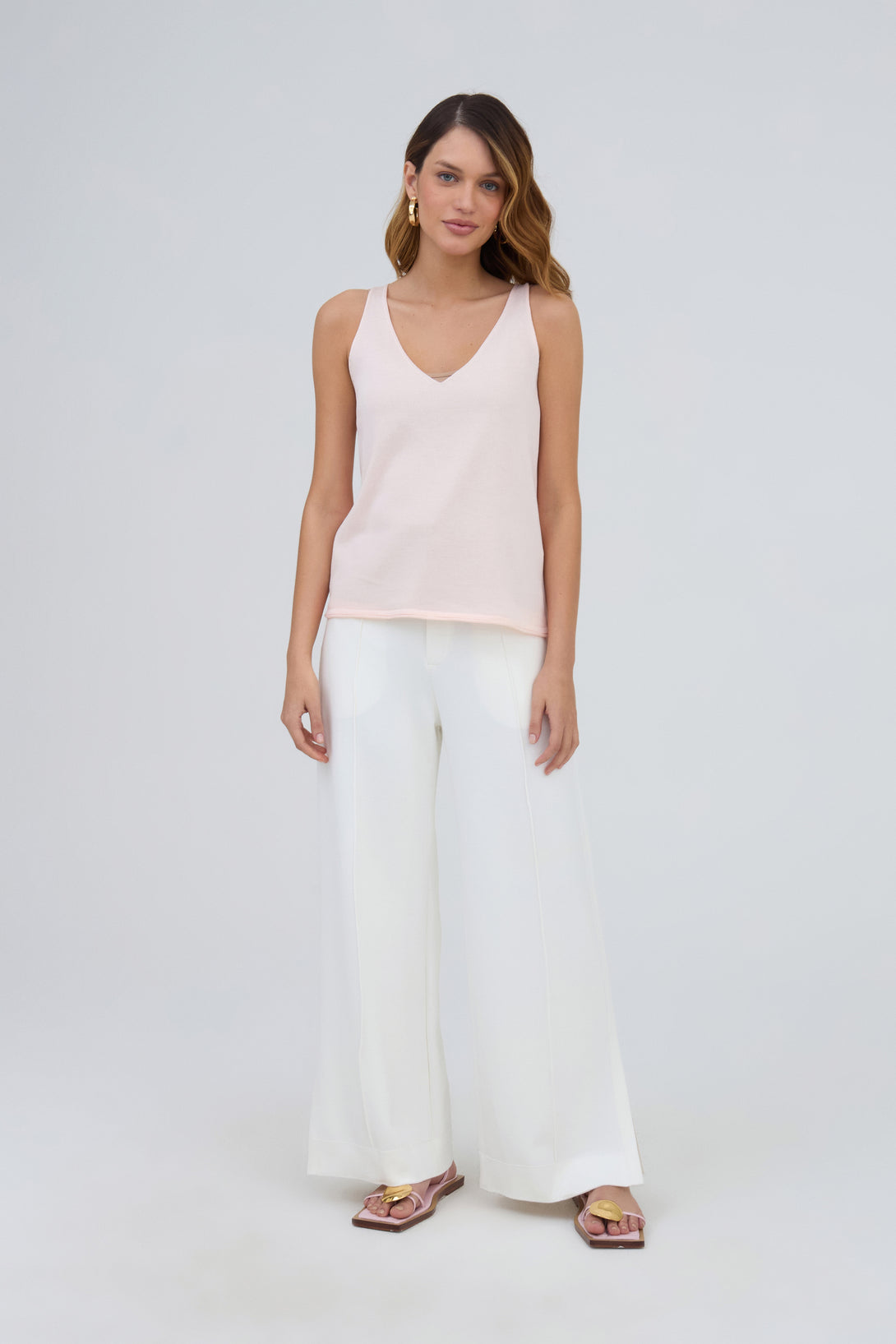 A Calça Wide em Malha apresente um shape feminino, ajuste solto ao corpo e bolsos laterais.