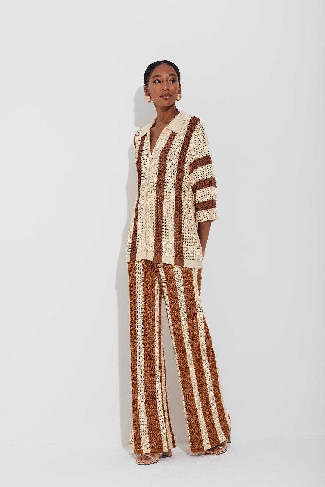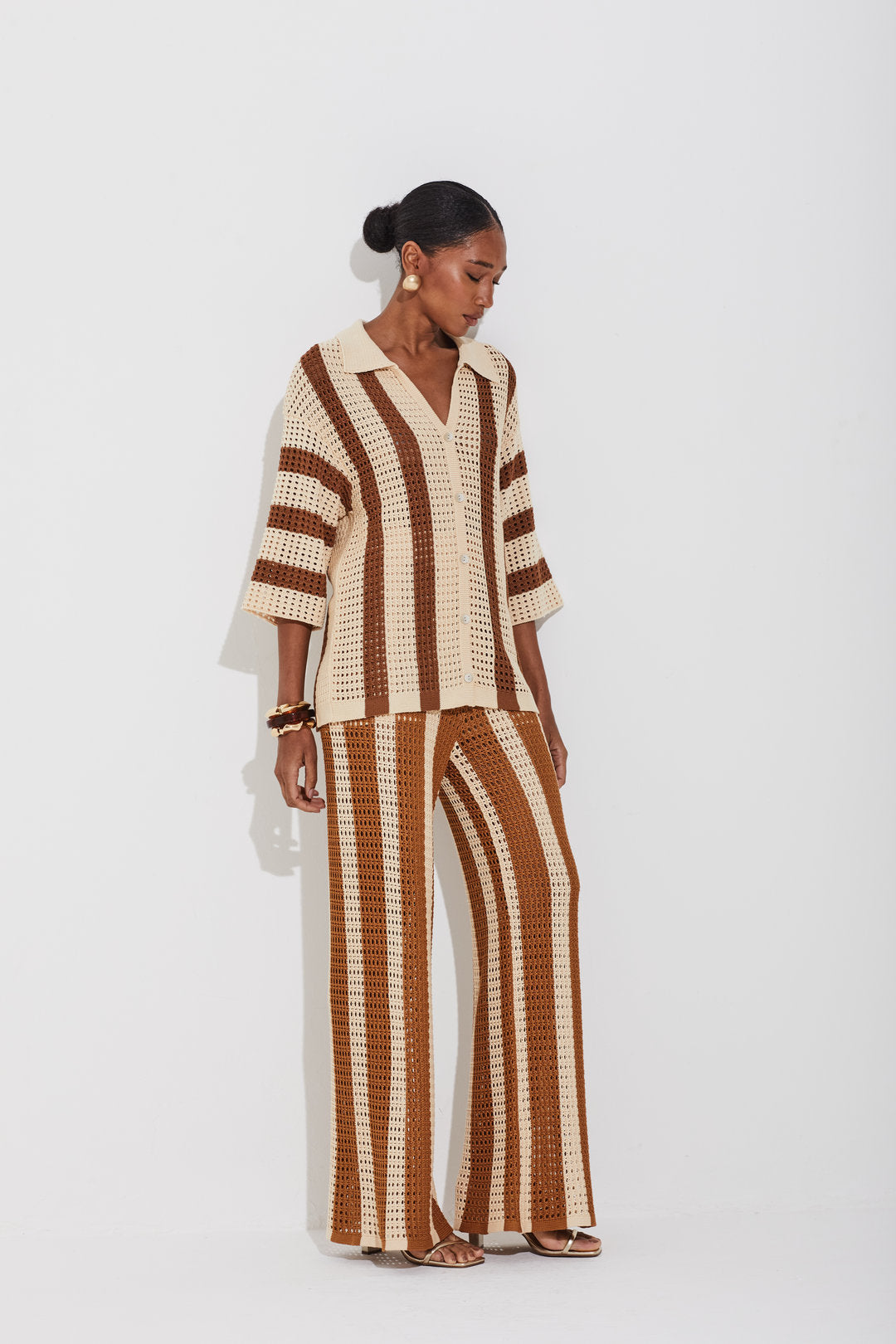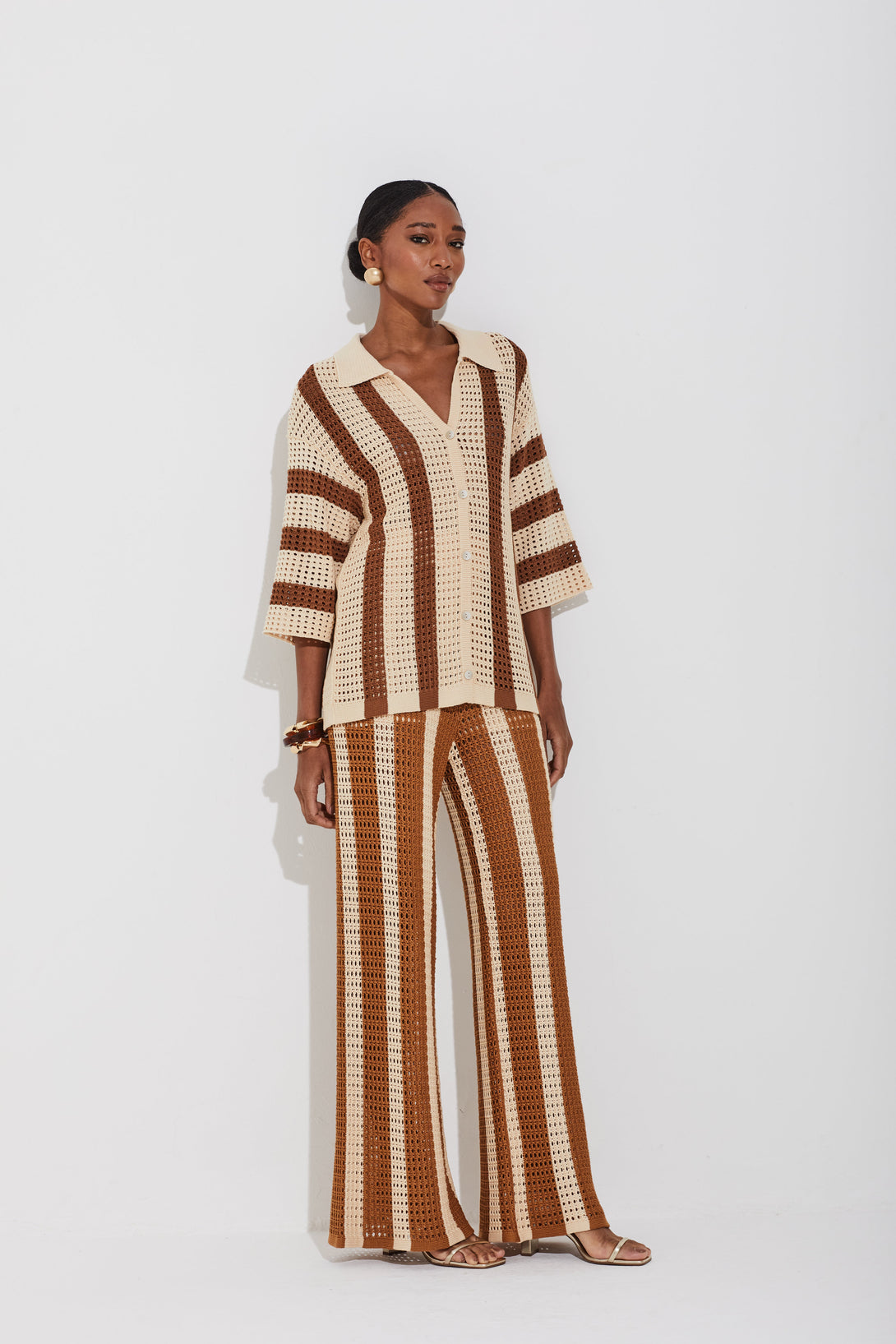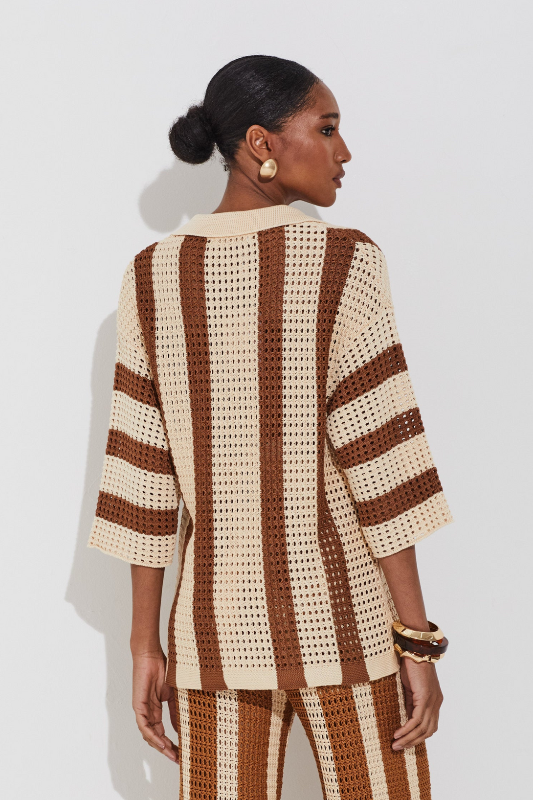 Camisa Tricot Listrado Rústico Ambar Terroso/bege Champagne