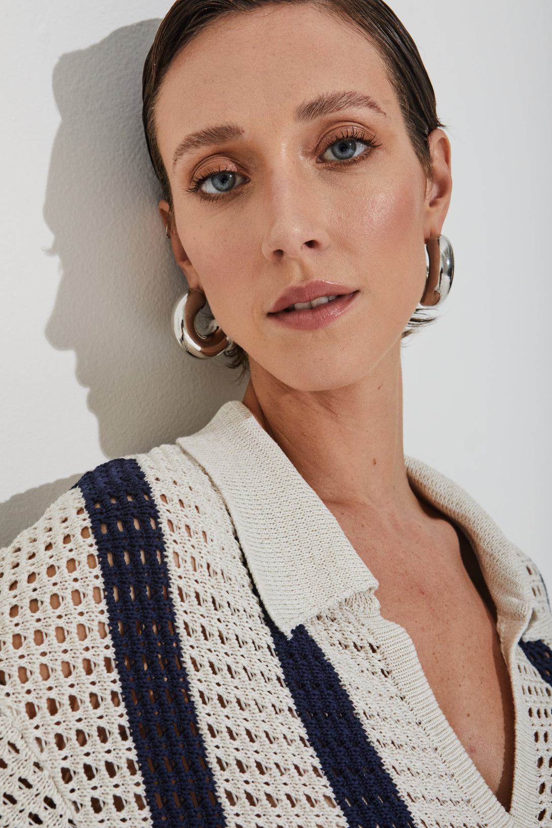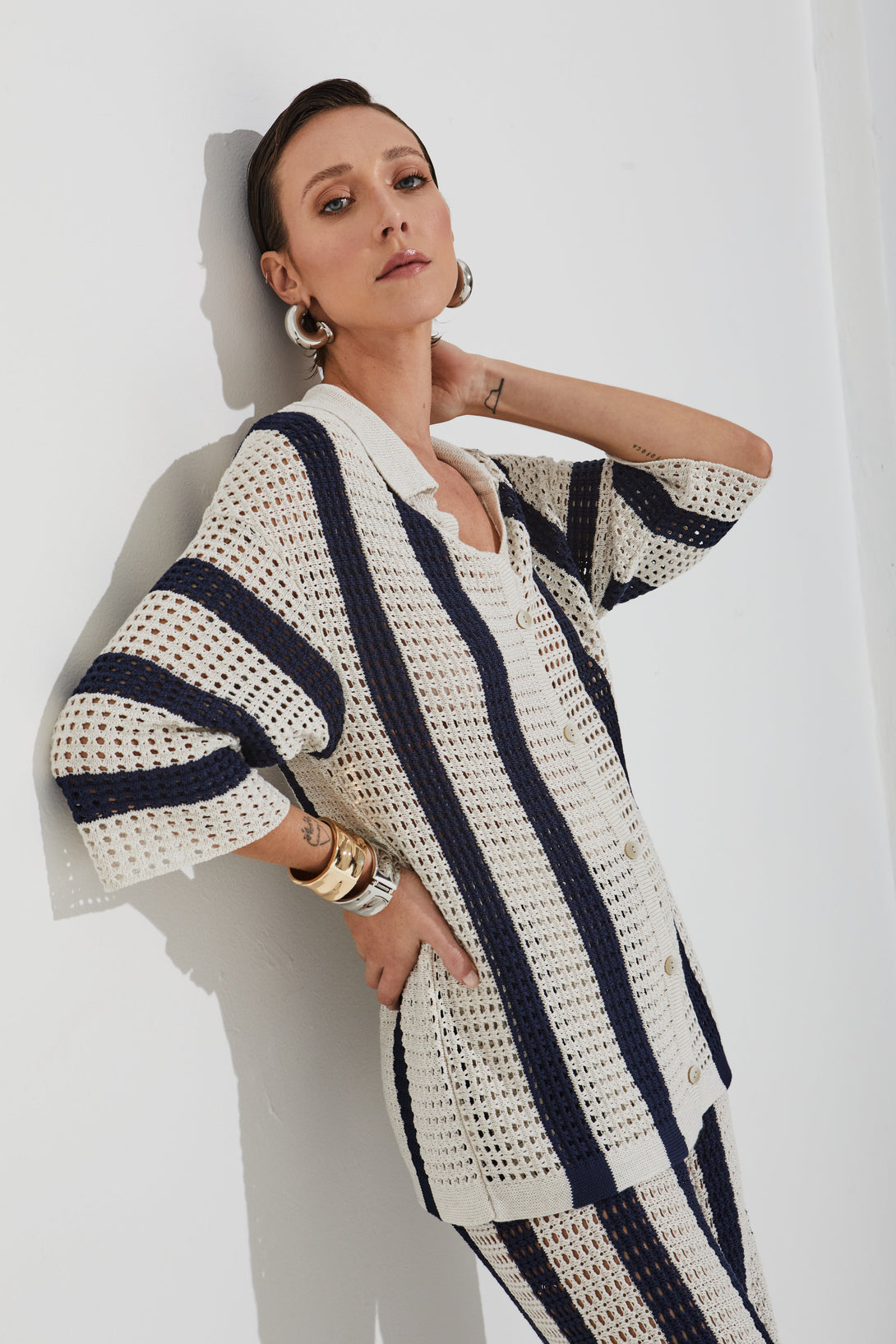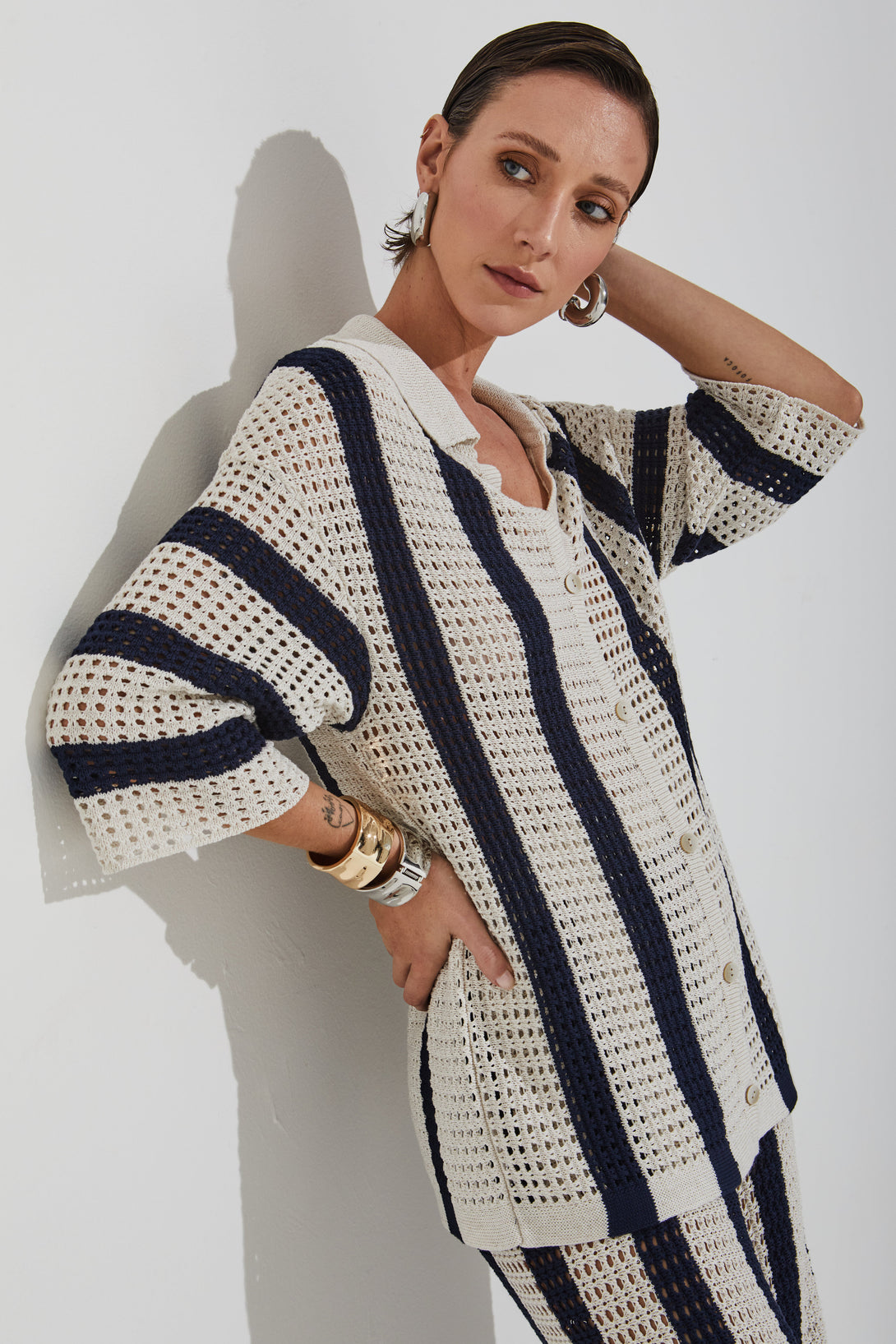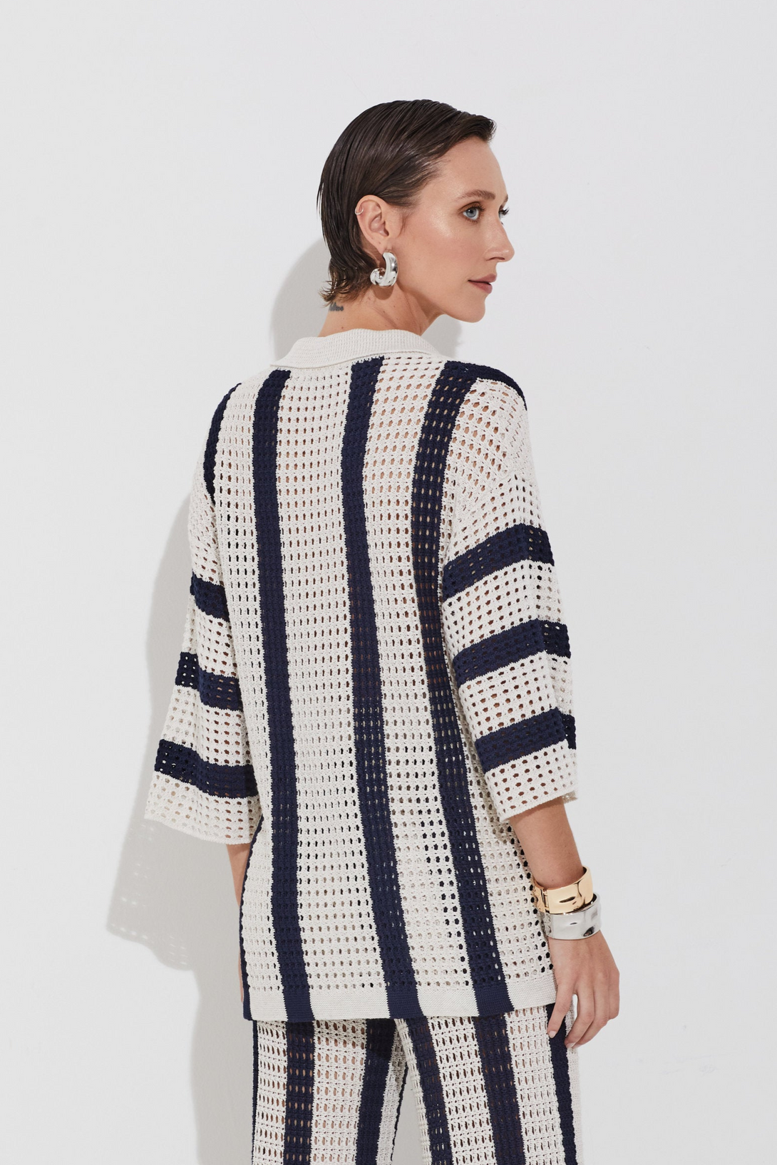 • Camisa Tricot Listrado Rústico Linho/navy Classico
