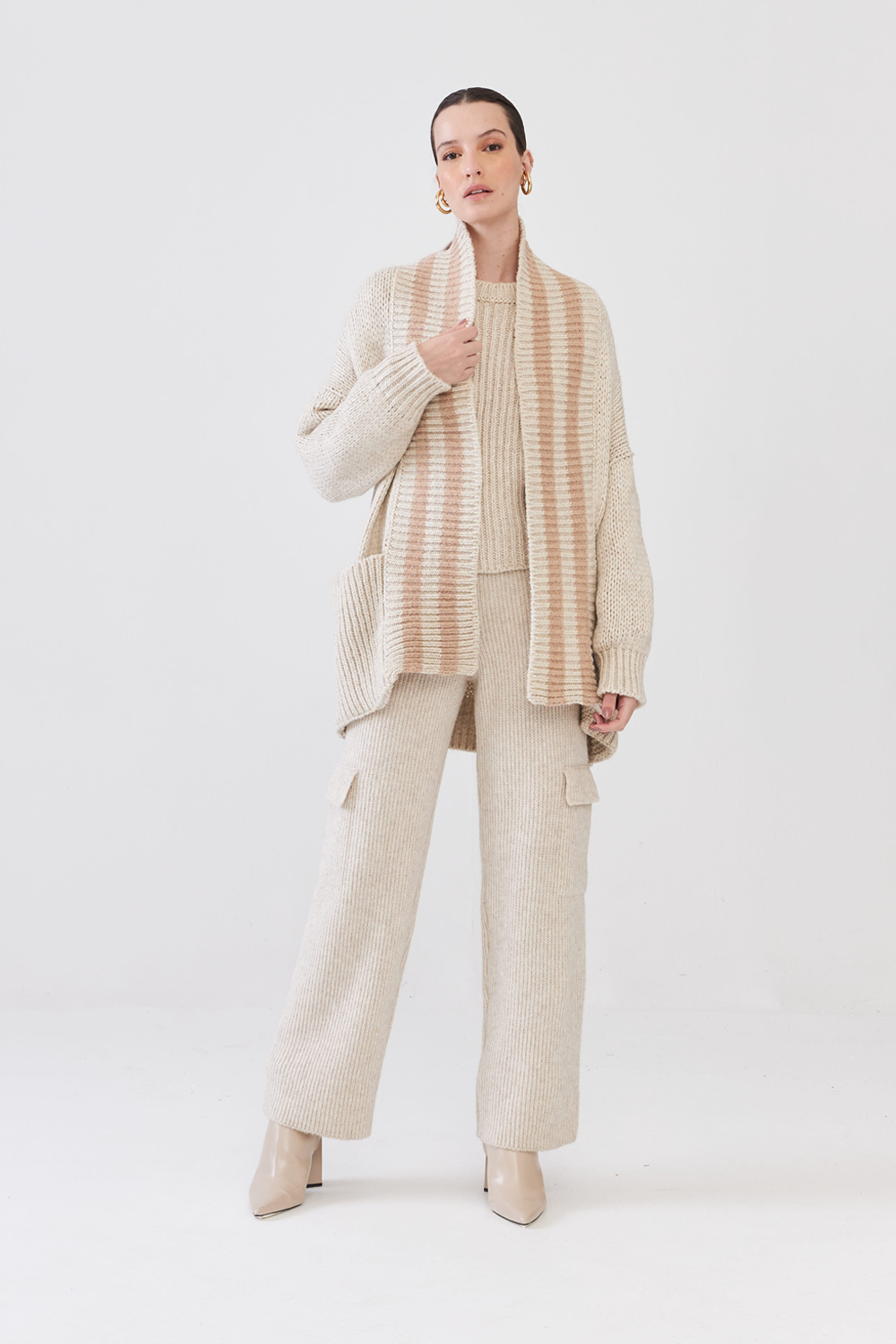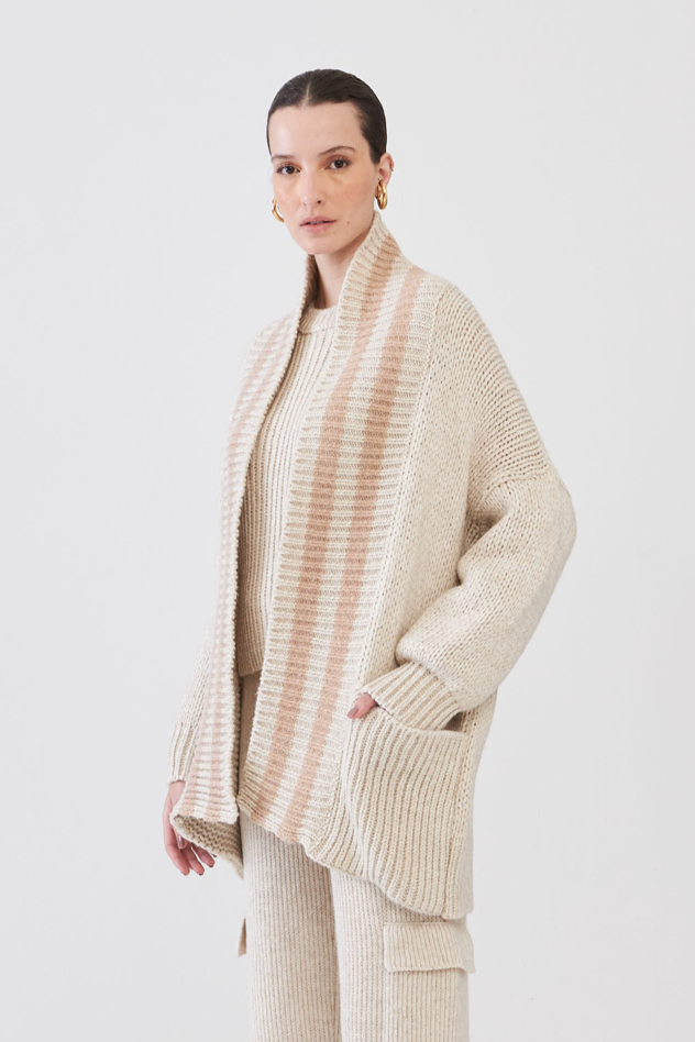 Cardigan Em Tricot Com Listras Papiro/Champagne