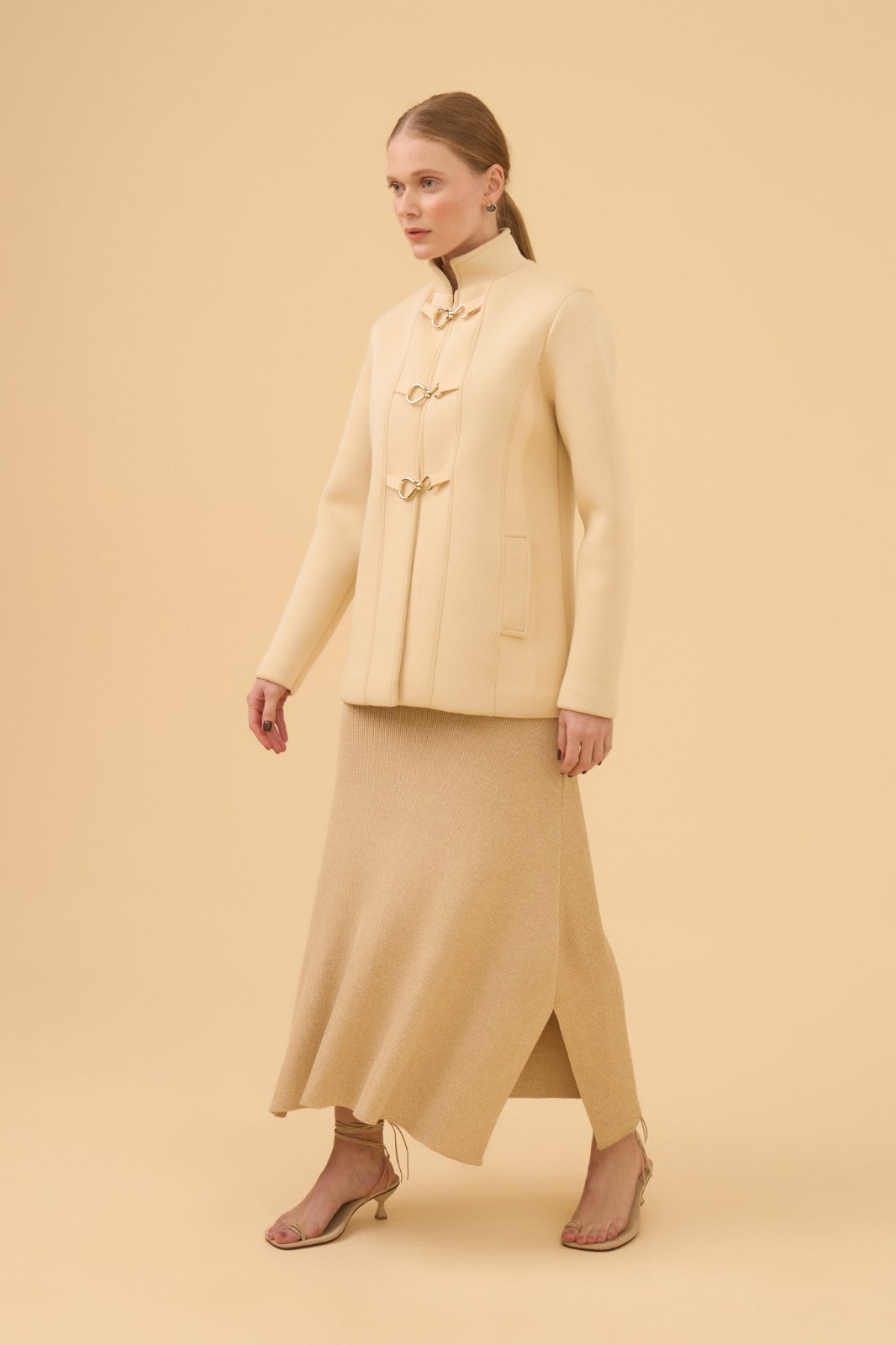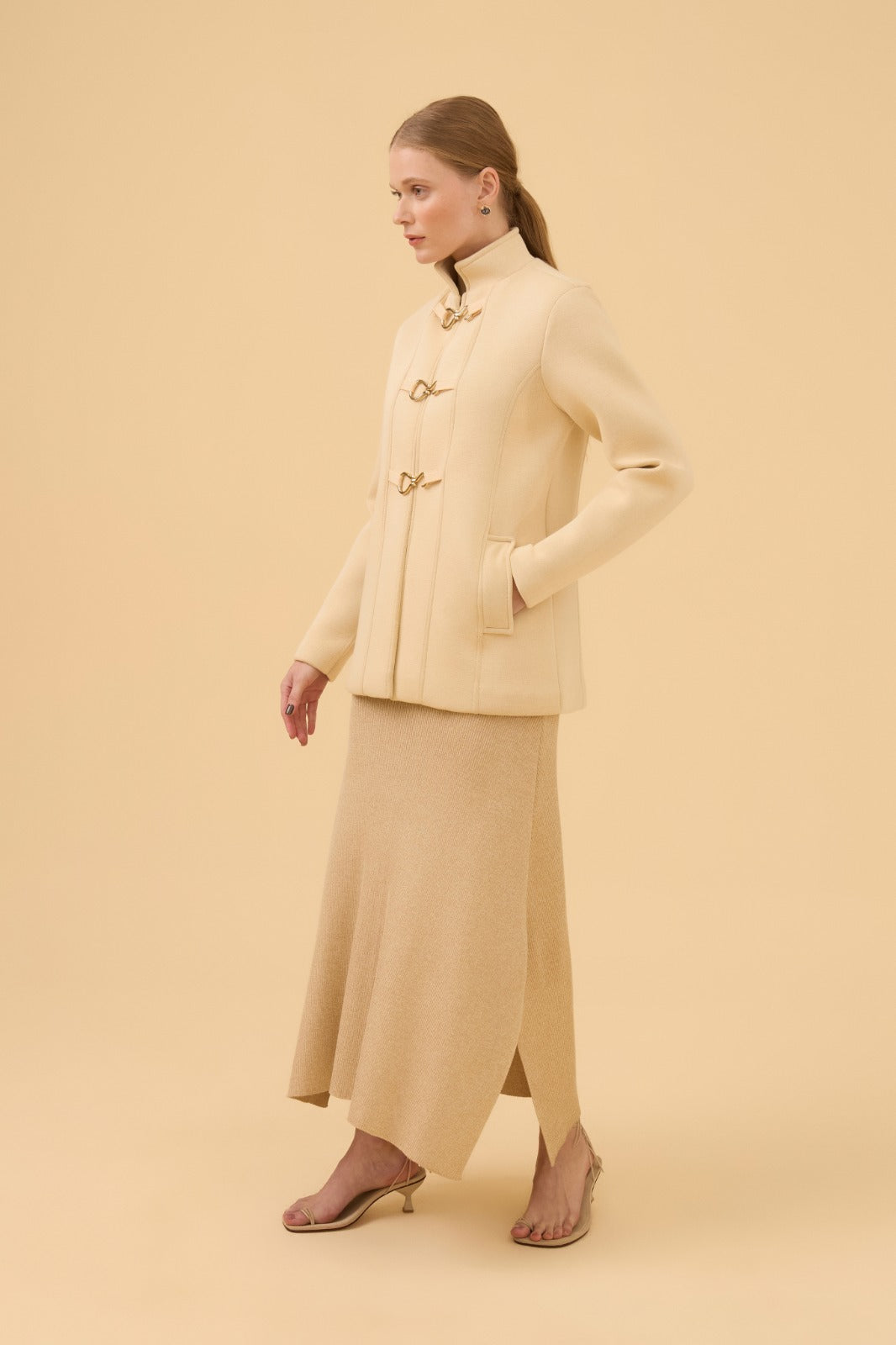 Casaco Com Fivelas Metal Em Dublado Bege Champagne