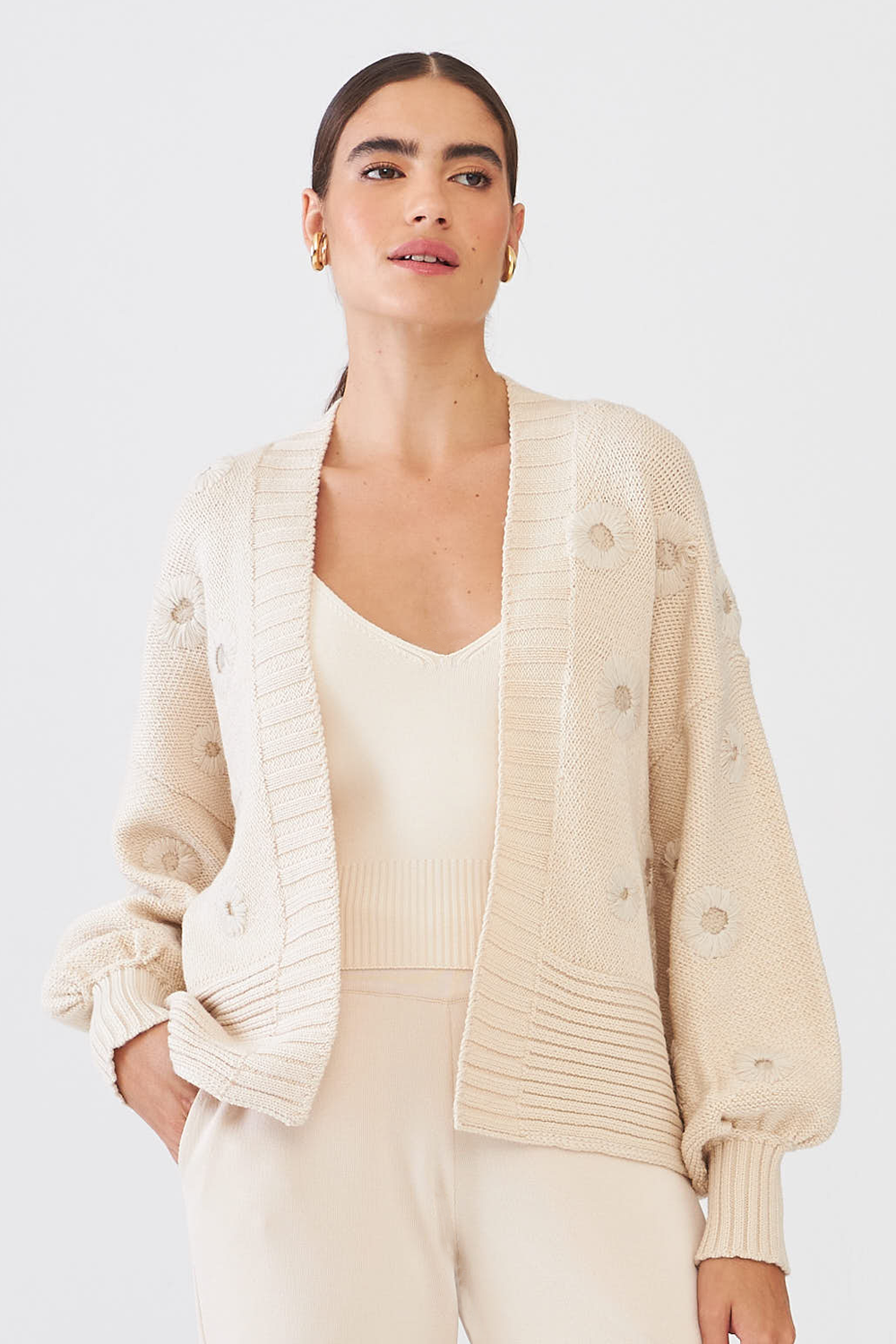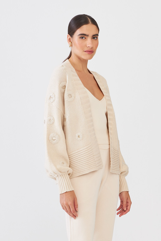 Casaco com mangas amplas Ninive é perfeito para quem busca estilo e conforto. Com aplicações bordadas, este casaco traz um toque de sofisticação ao seu look. Ideal para dias frios, aposte!