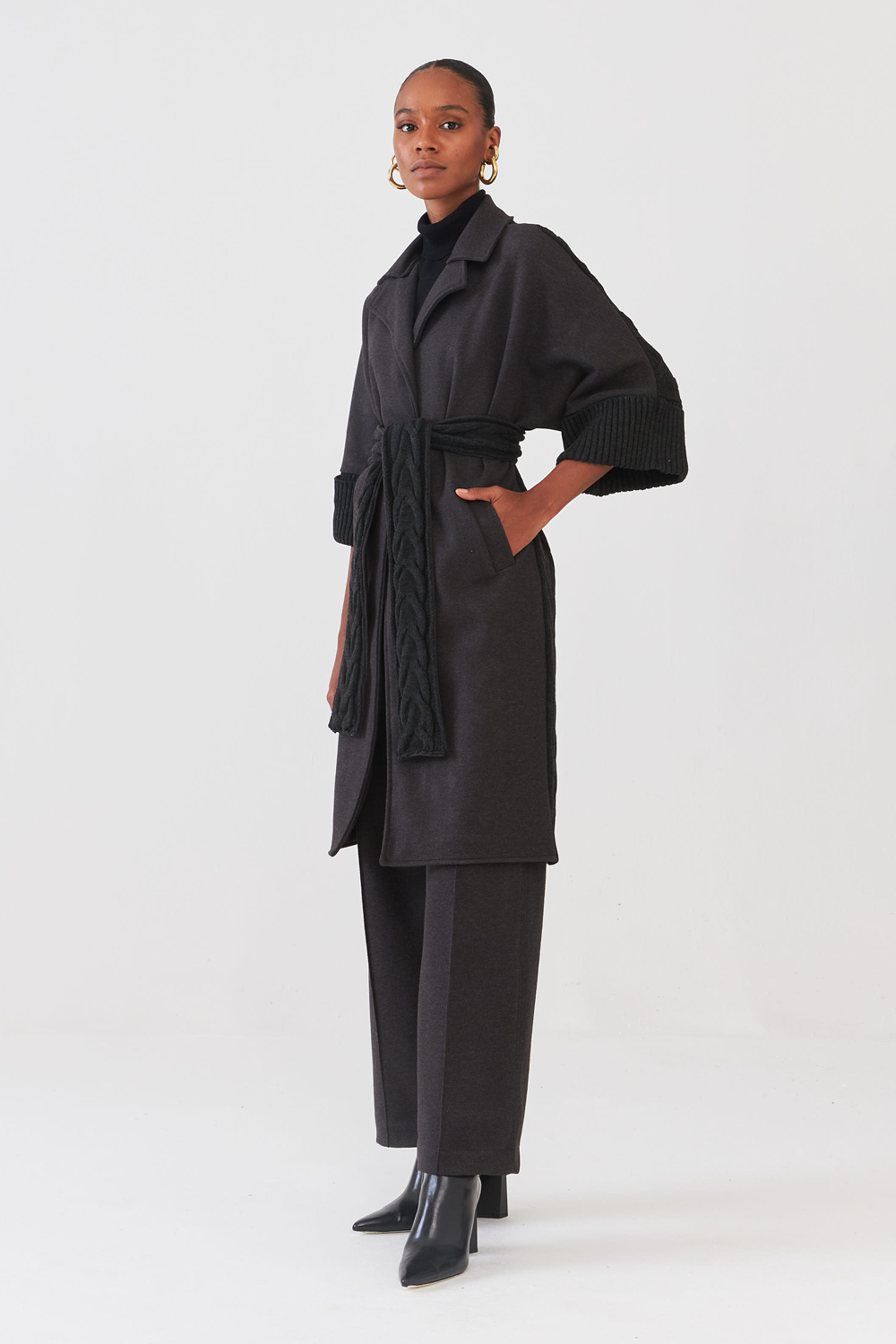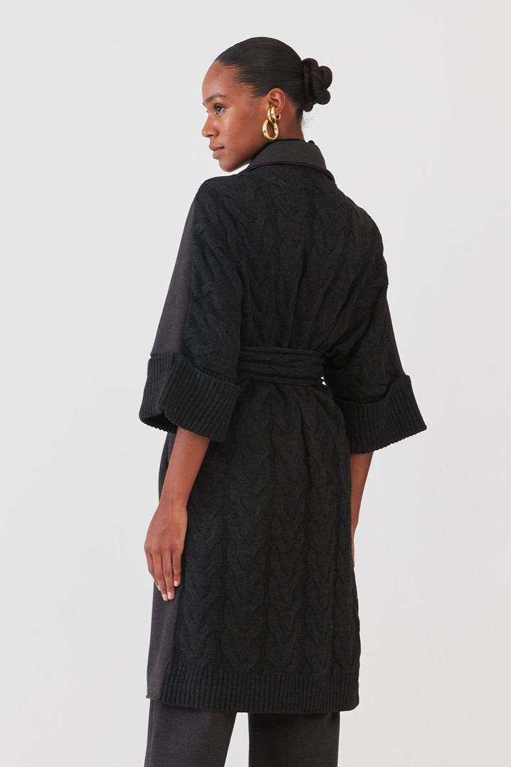 Este casaco de tricot possui mangas 7/8 e costas em tricot, proporcionando elegância e conforto. Seu design moderno e sofisticado é perfeito para completar o look com estilo e praticidade. A atenção fica para o detalhe das costas com tricot trançado, trazendo o conforto e o aspecto aconchegante para o seu visual de Inverno.
