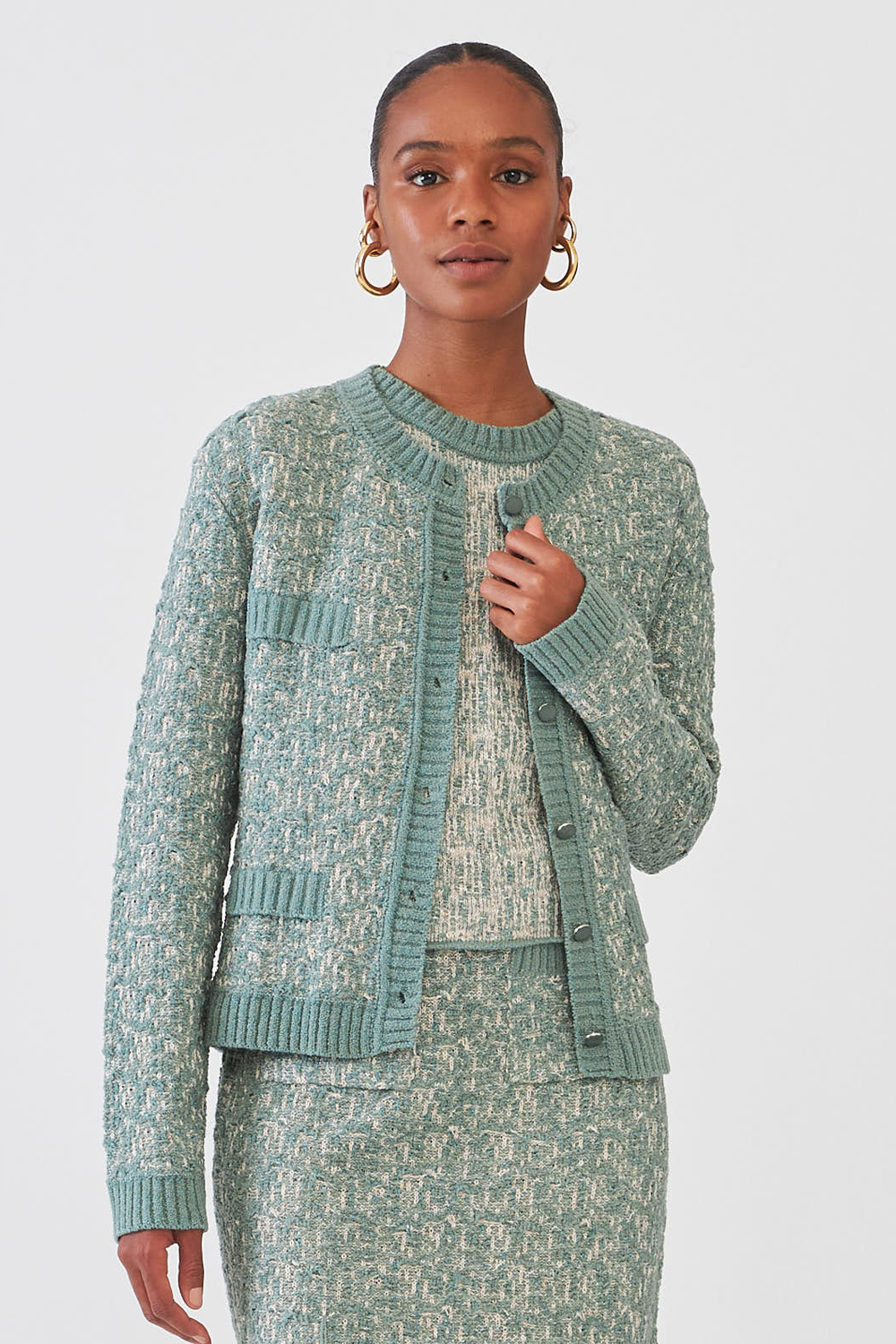 Casaqueto Em Tricot Tweed Tweed Coral Azul