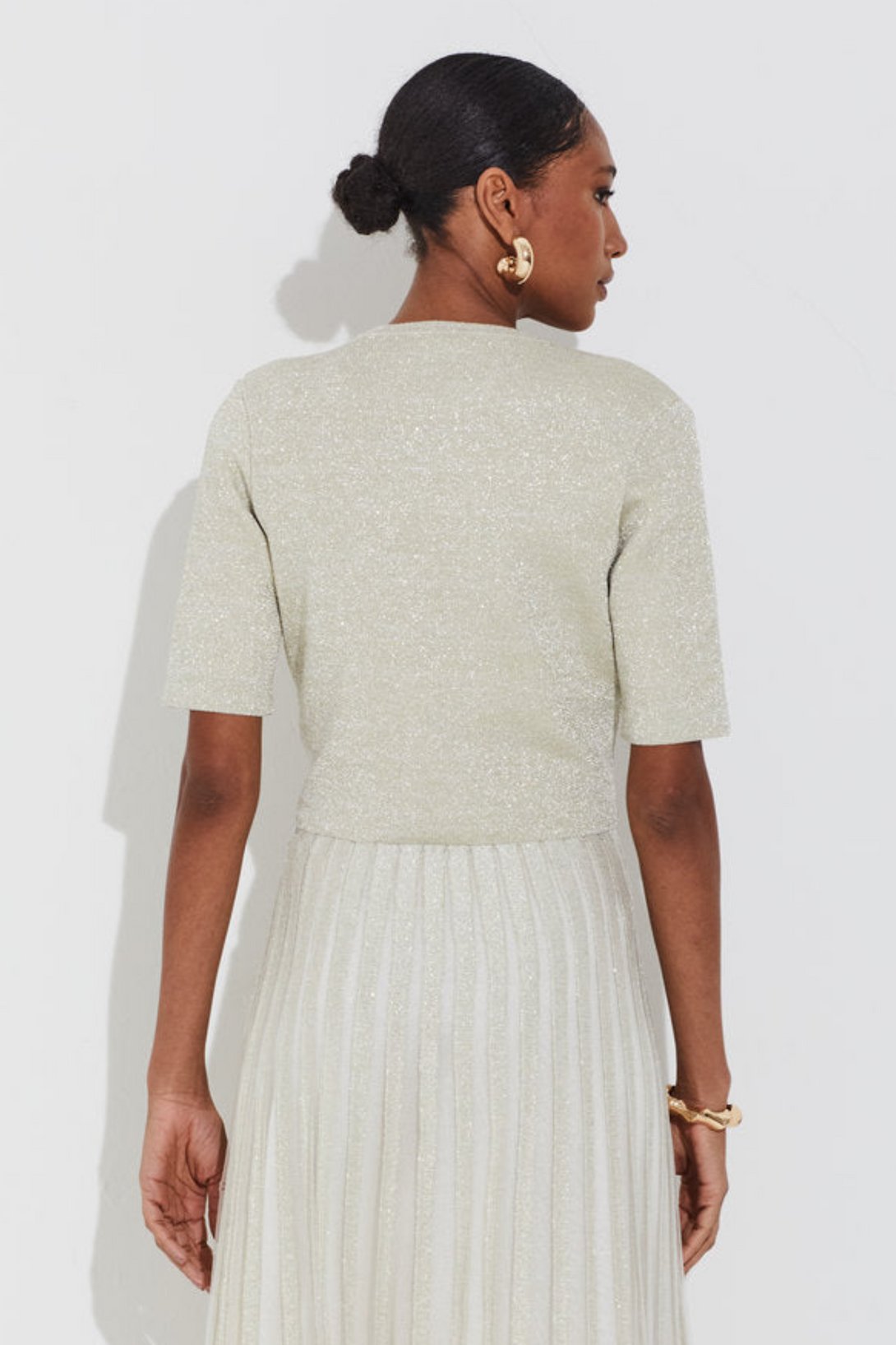 OUTRAS CORES:: Casaqueto Manga 3/4 Em Tricot Com Lurex Transparencia Areia