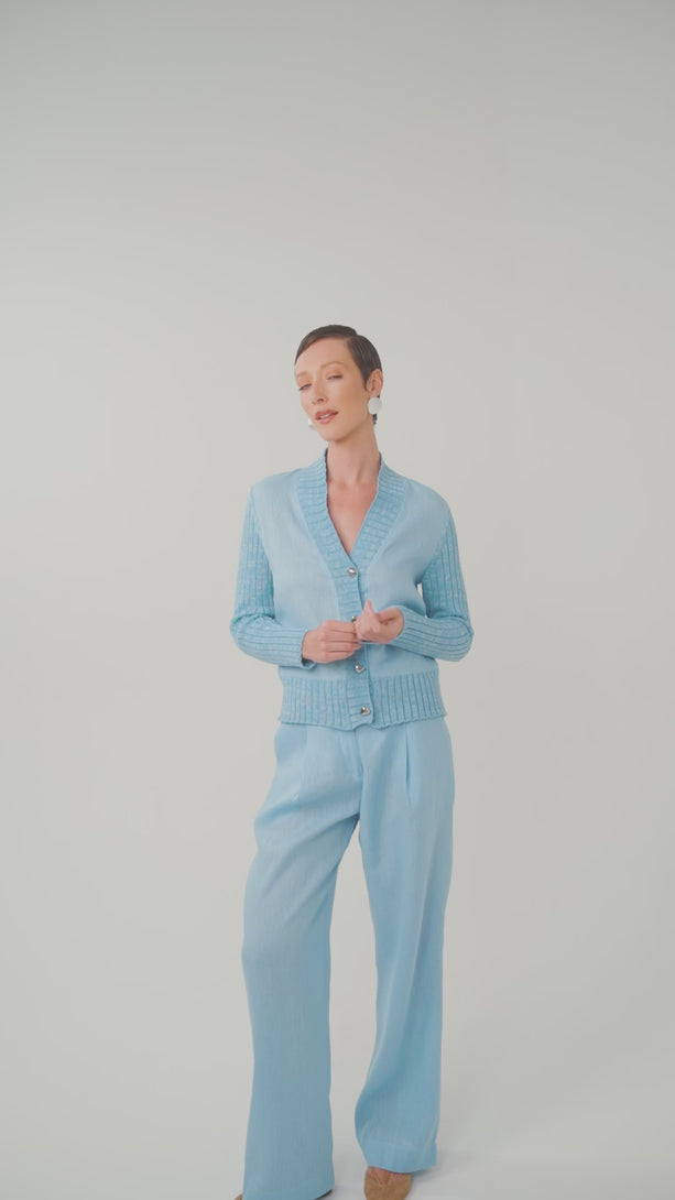 OUTRAS CORES:: Casaqueto Tricot Com Linho Sunny Sky