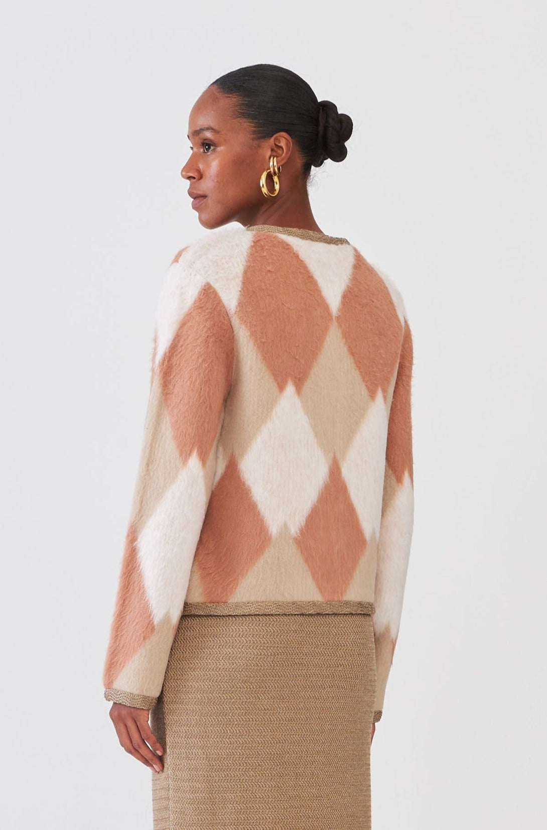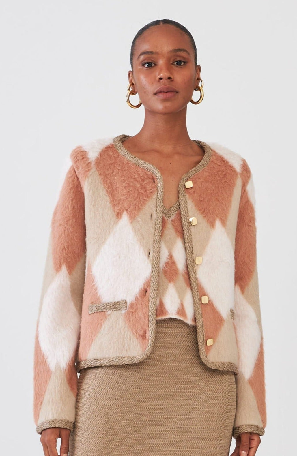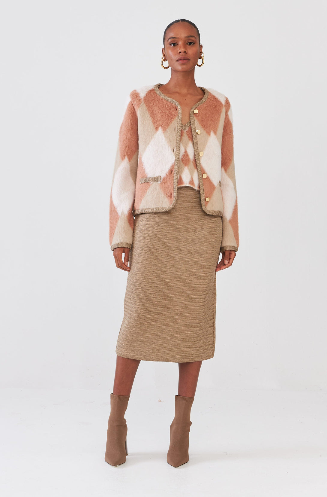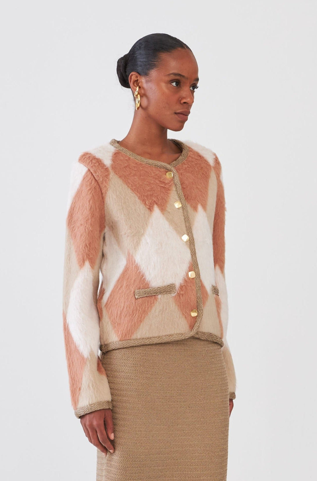 O Casaqueto Em Tricot Lixado proporciona maciez e aconchego do tricot com um toque estruturado. O design geométrico adiciona um toque fashion ao visual com uma combinação de cores contrastantes que promete ser o ponto chave do seu look de Inverno.