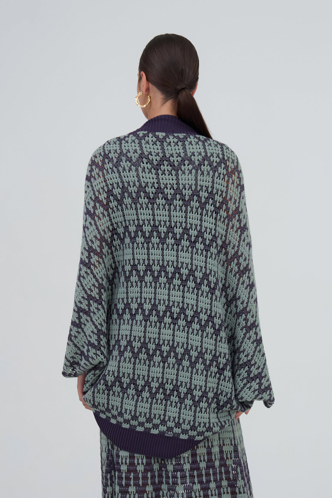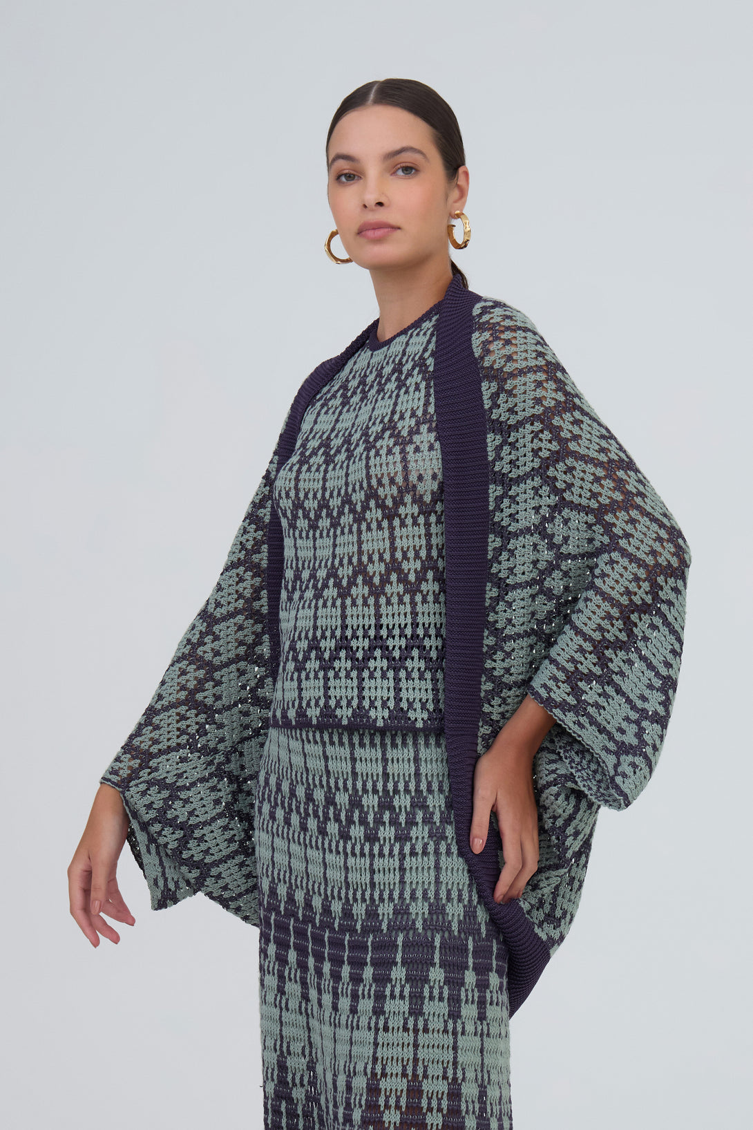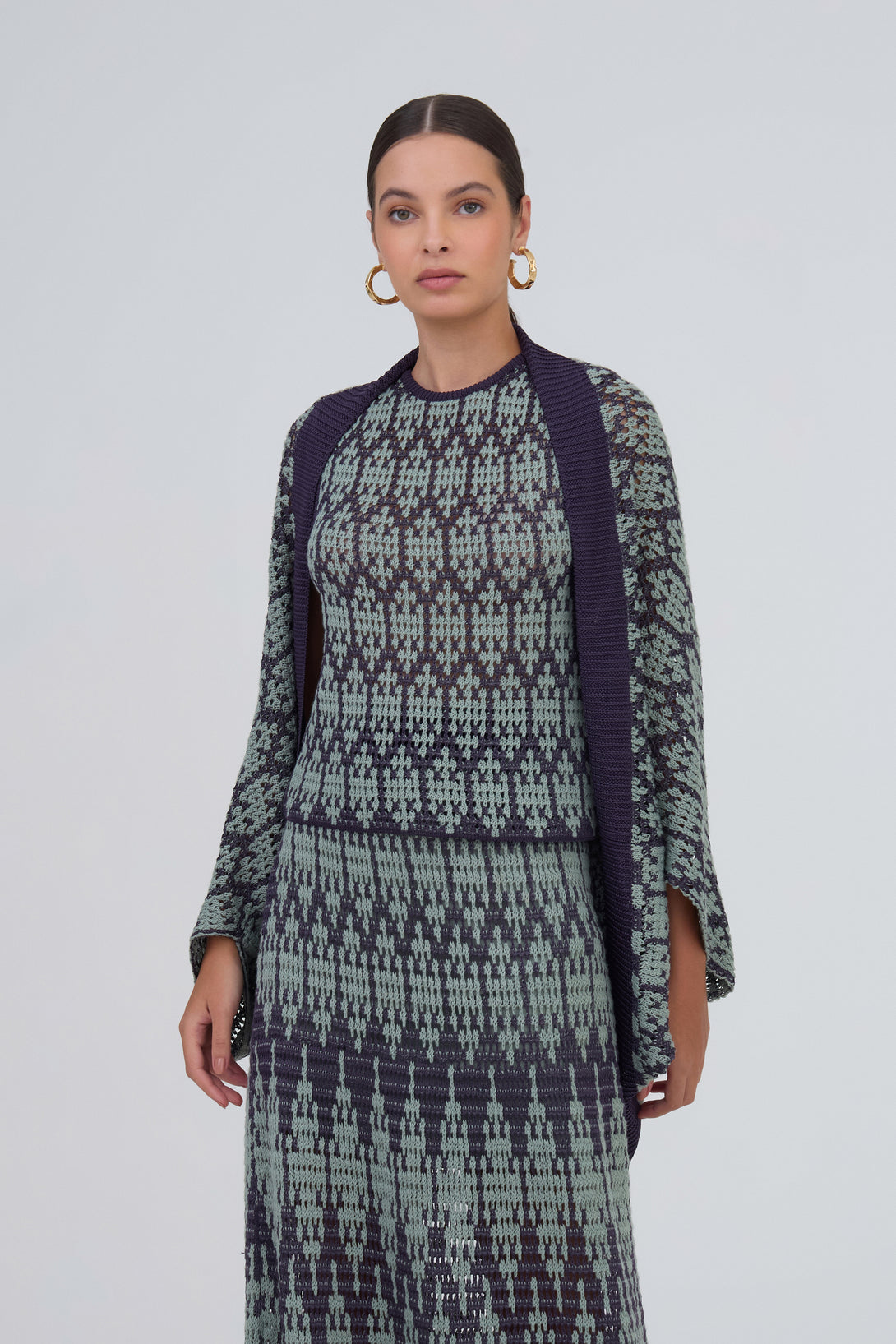 O Casulo Bicolor traz um shape clássico que reflete a essência da marca, destacando-se pelo jacquard que remeta a uma confecção em crochê.