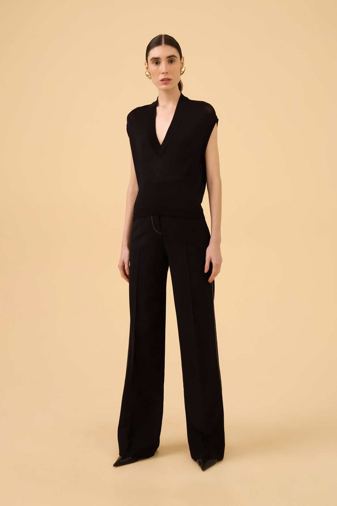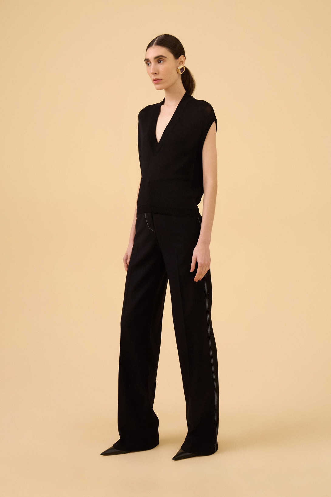 O Colete com Acabamentos Canelado em Tricot é uma peça sofisticada e moderna, com detalhes canelados que adicionam textura e estilo ao visual. Seu design sem mangas e o tricot macio oferecem conforto e versatilidade. Ideal para sobreposições, criando looks quentinhos e contemporâneos.