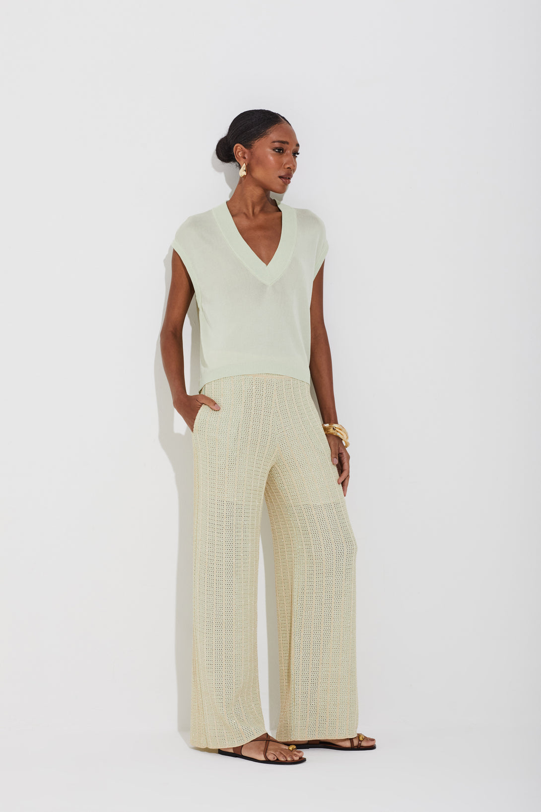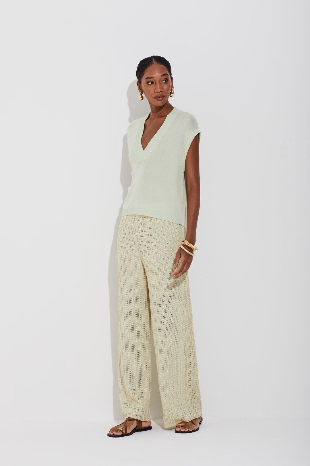 Colete Com Acabamentos Canelados Em Tricot Verde Claro