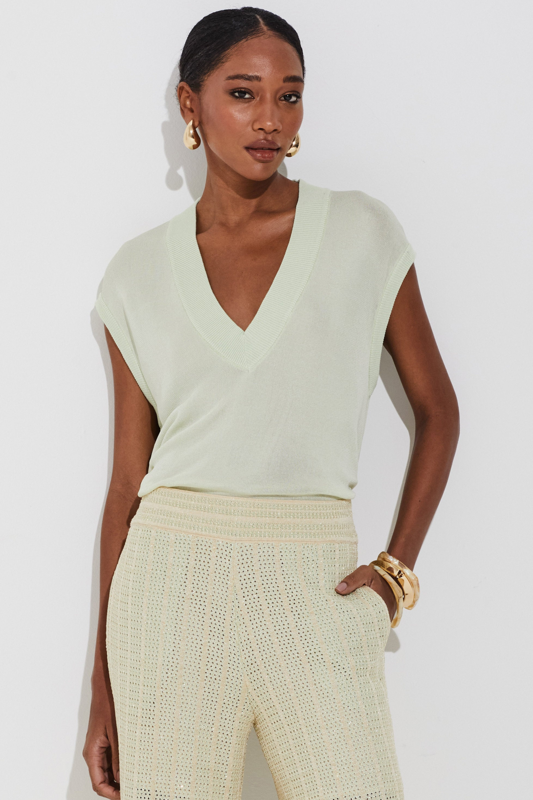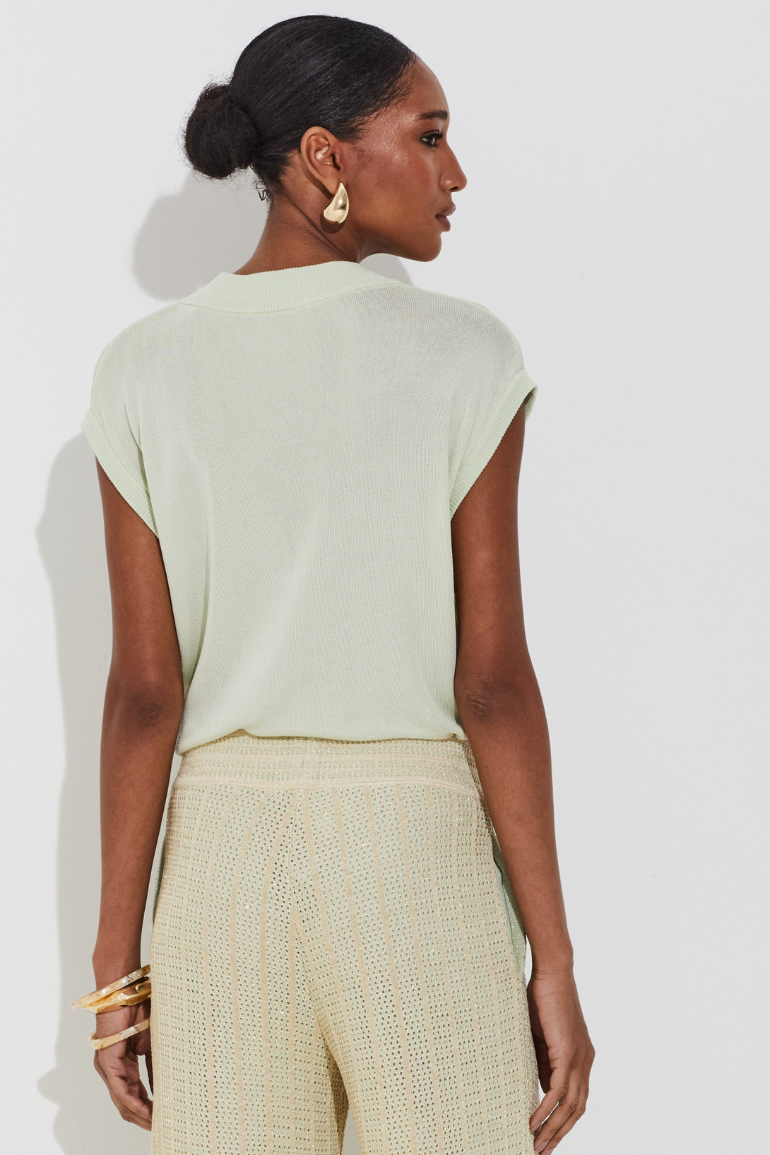 • Este item: Colete Com Acabamentos Canelados Em Tricot Verde Claro
