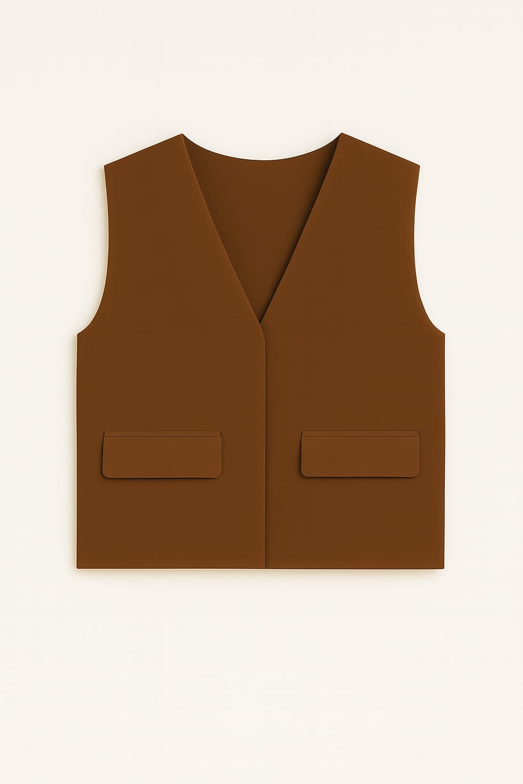 OUTRAS CORES:: Colete Em Crepe Com Fechamento Em V Canela