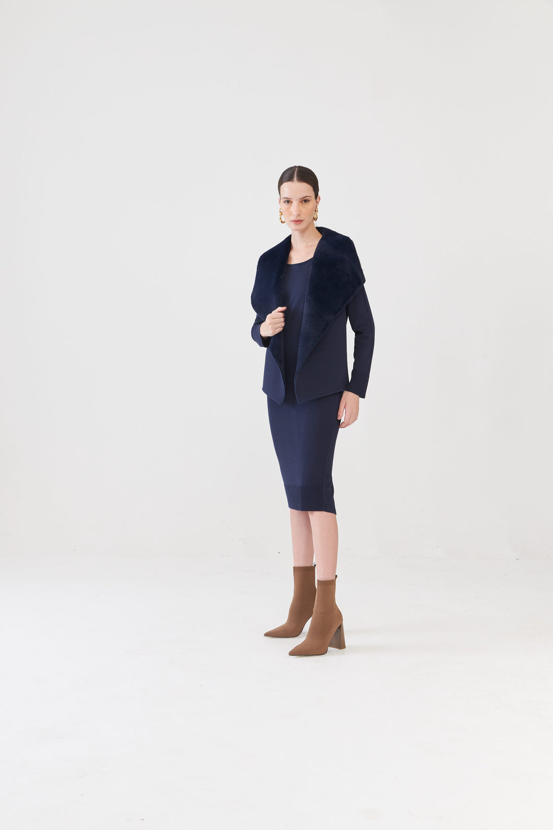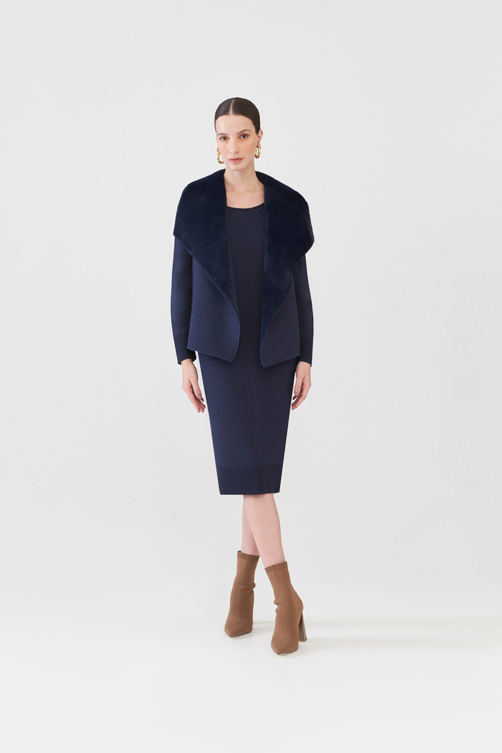 Colete Em Tricot Com Gola Fake Fur Meia Noite
