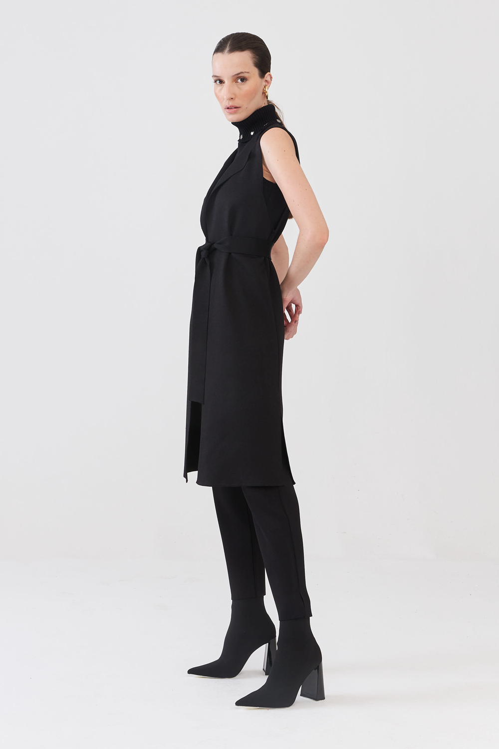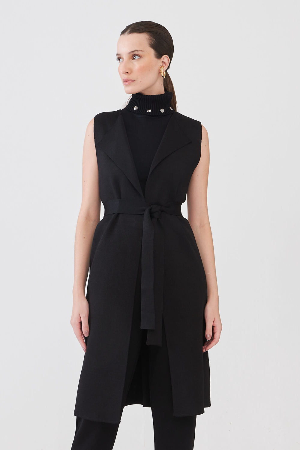 Feito em tricot estruturado com um leve brilho, é perfeito para os dias mais amenos. Uma peça versátil e clássica que não pode faltar no guarda-roupa de uma mulher moderna. A peça não acompanha faixa na cintura.