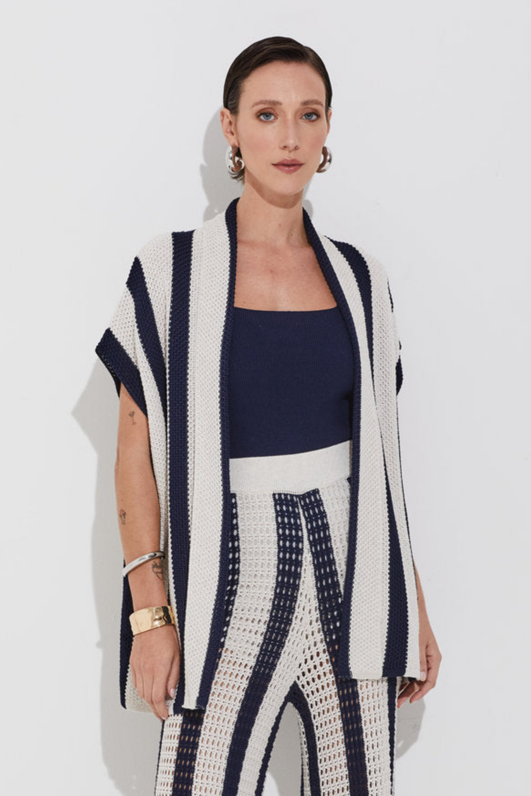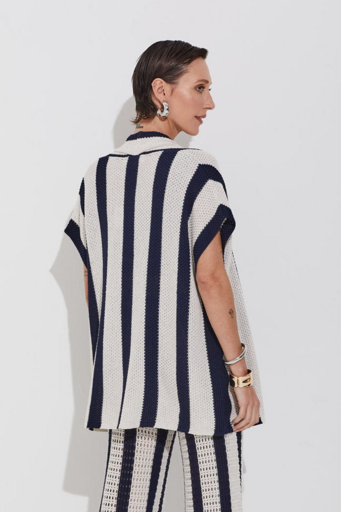 Colete Tricot Listrado Rústico Linho/navy Classico