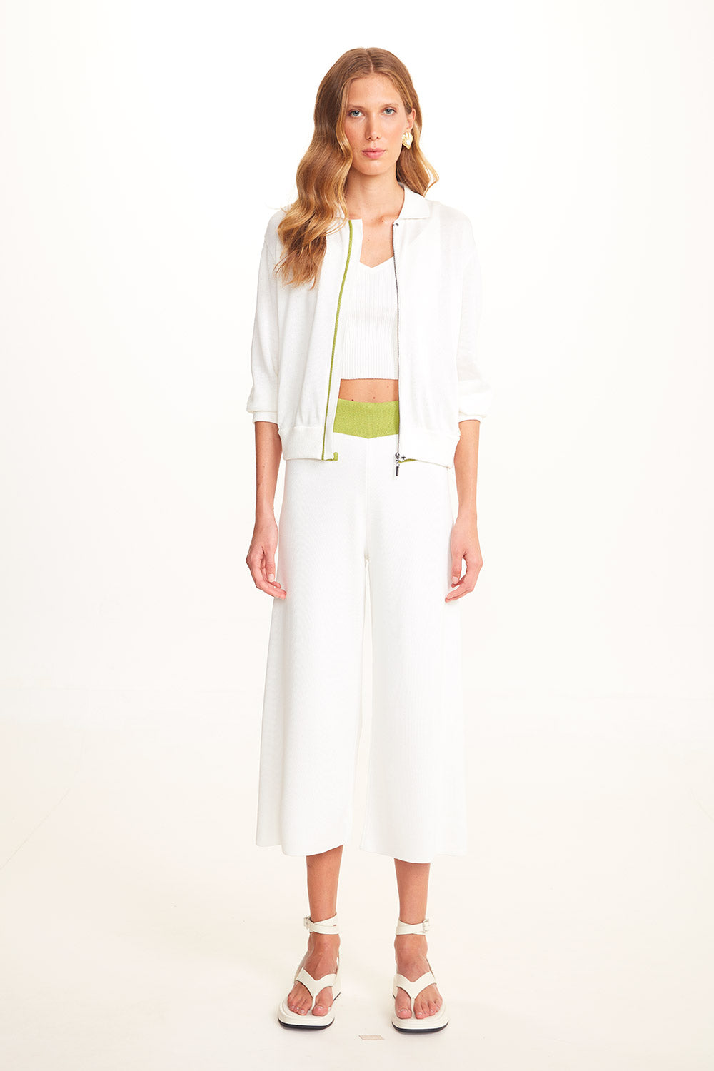 Jaqueta Detalhe Frisos Em Tricot Vivo Verde Ervilha