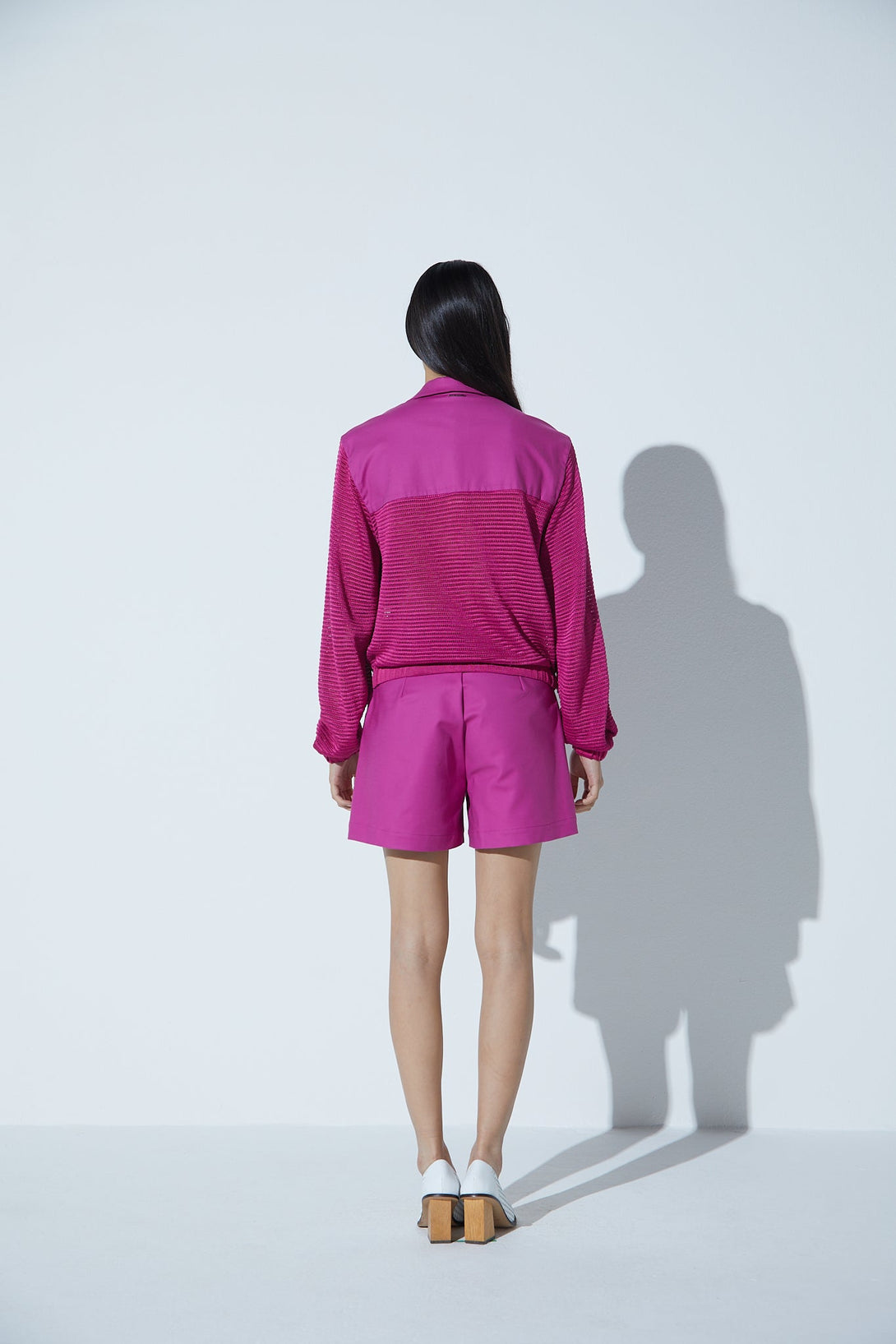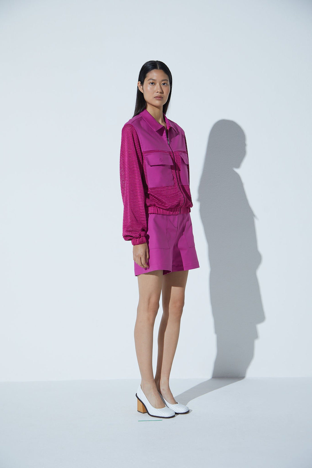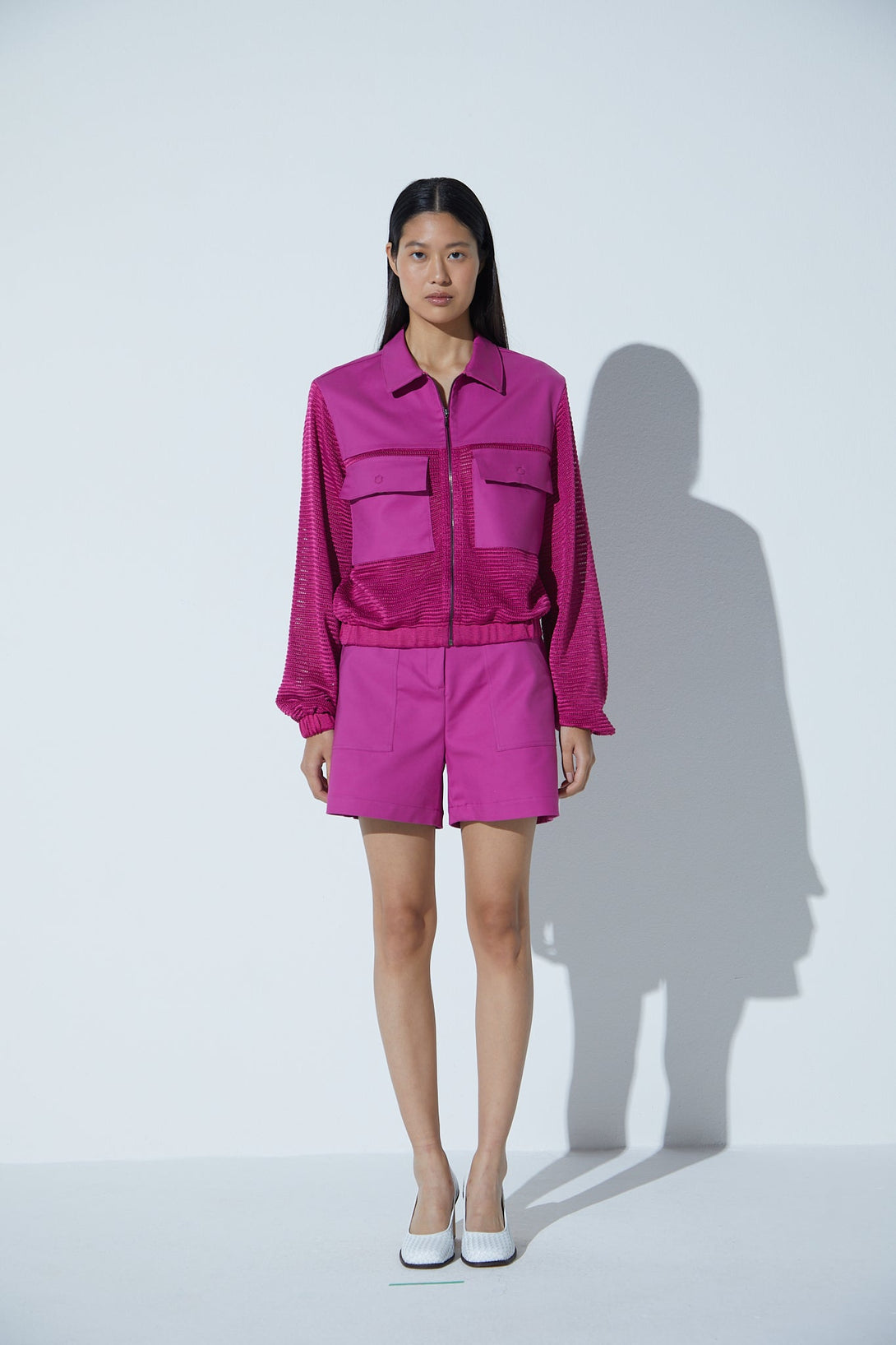 Jaqueta Em Tricot Com Bolsos Fucsia