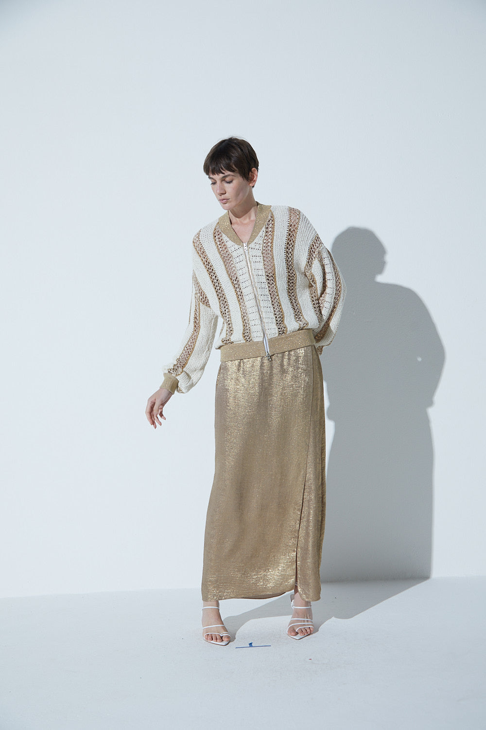 Confeccionada em tricot de mix de fios de algodão reciclado com fio cordonê e lurez, a Jaqueta Em Tricot Mix Listras e Telas associa o mis de pontos e cria um tricot exclusivo, rústico e muito sofisticado. Além dos fios de algodão reciclado, o fio cordonê é um fio importado com uma técnica exclusiva de torção que dá o aspecto de artesanal único da peça. A jaqueta possui modelagem bomber, moderna e casual, possui bolsos frontais, padronagem de listras verticais e fechamento por zíper. O toque de brilho do lurex é a cara do Verão e adiciona uma dose extra de personalidade a qualquer visual. Aposte!