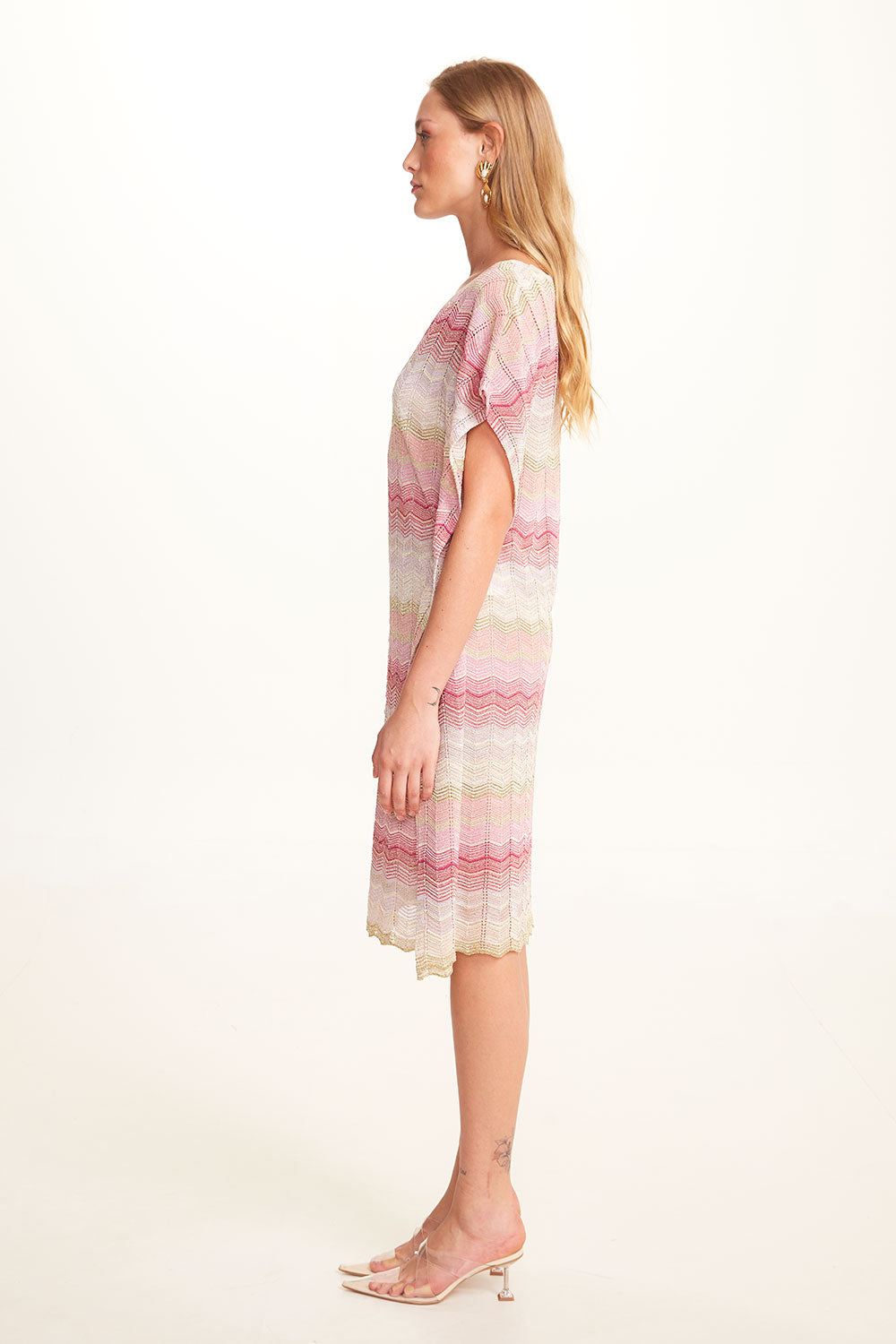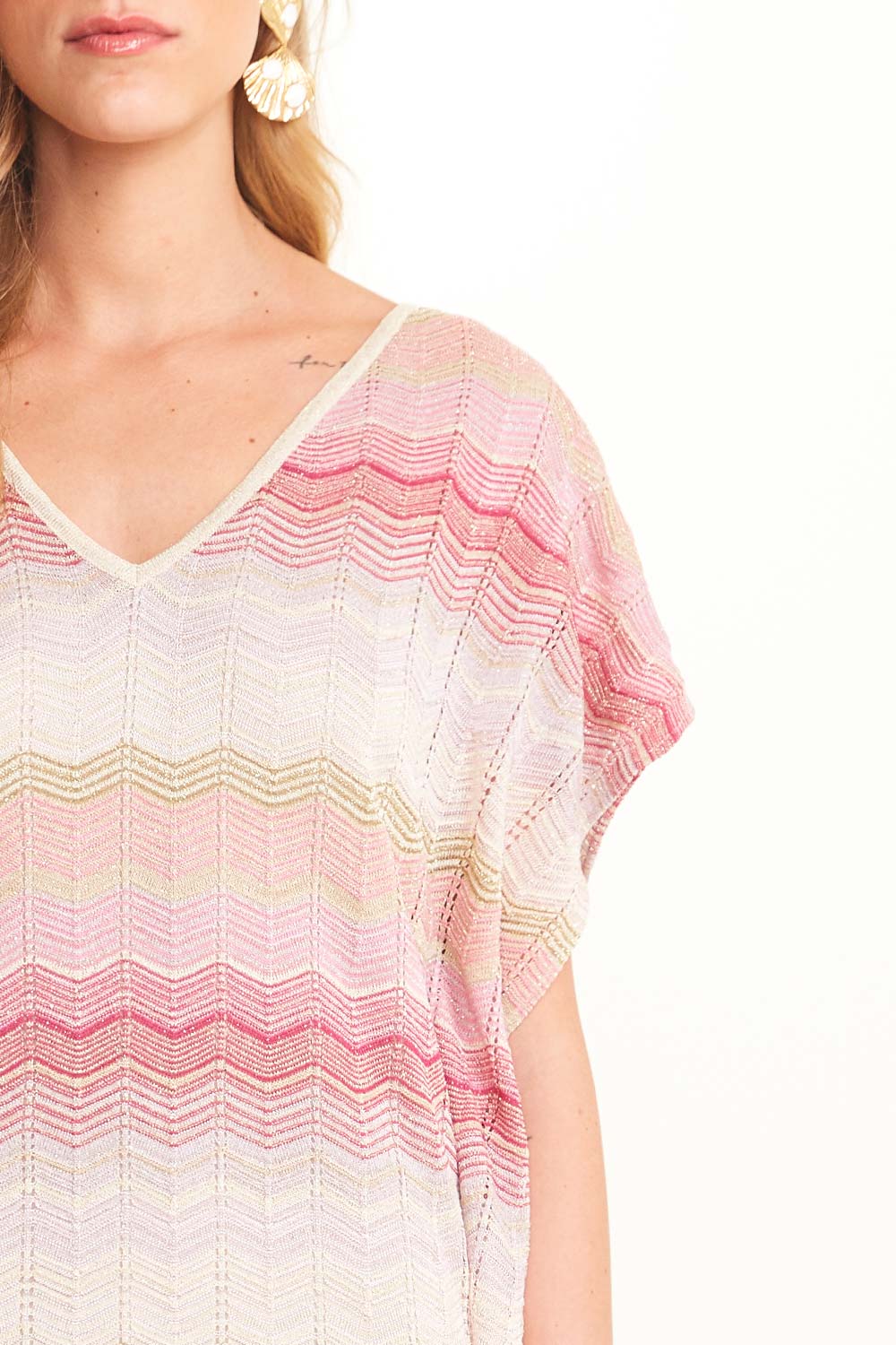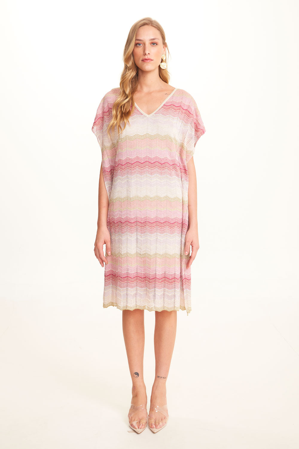 Kaftan Decote V em Tricot Zig Zag Chevron Batom