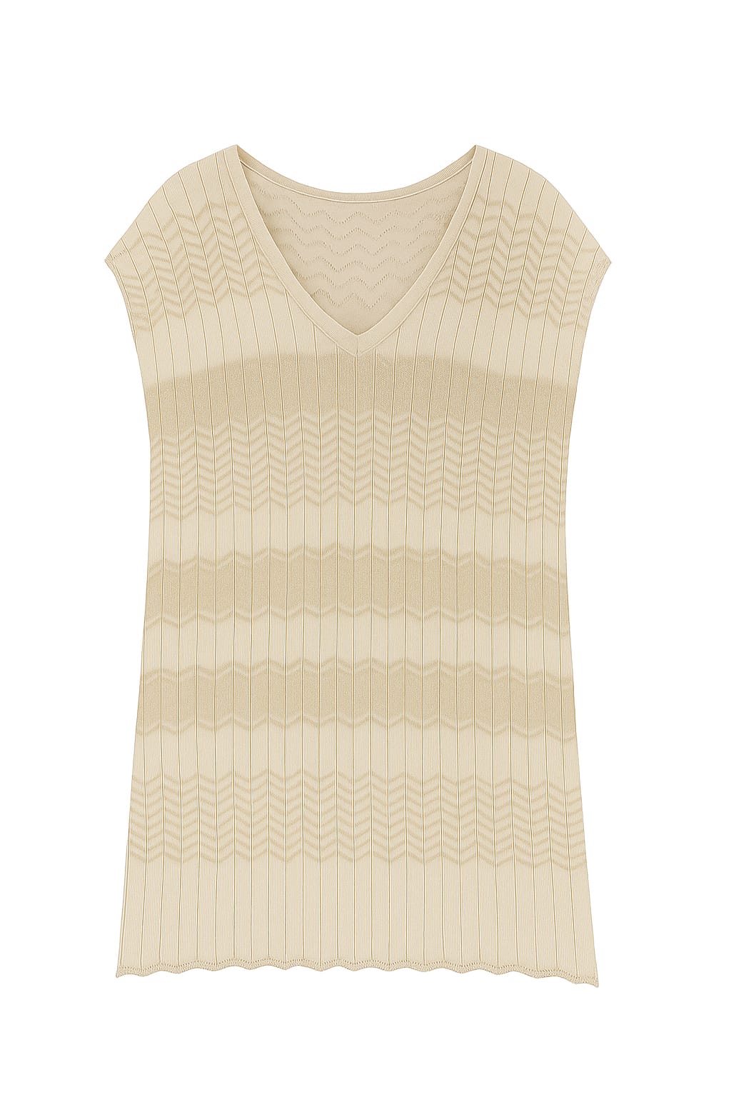 Kaftan Decote V em Tricot Zig Zag Chevron Camel