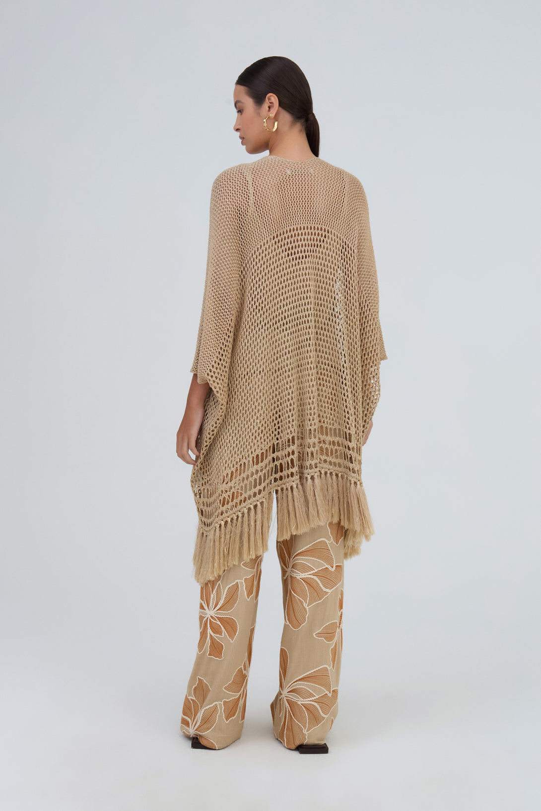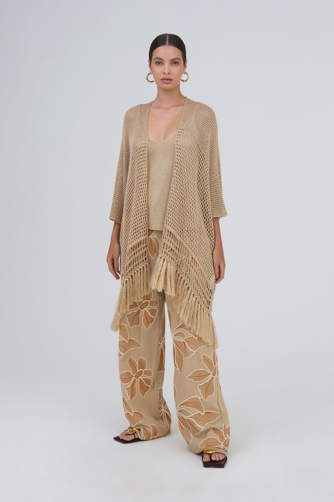 Kimono Com Lurex Detalhe Franjas Em Tricot Ninive Dourado