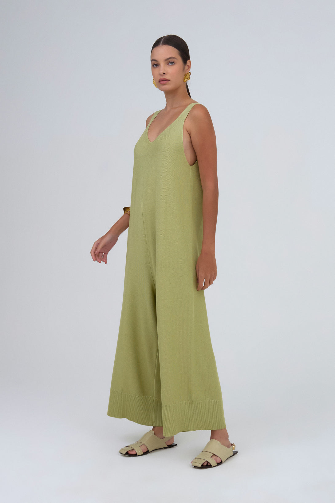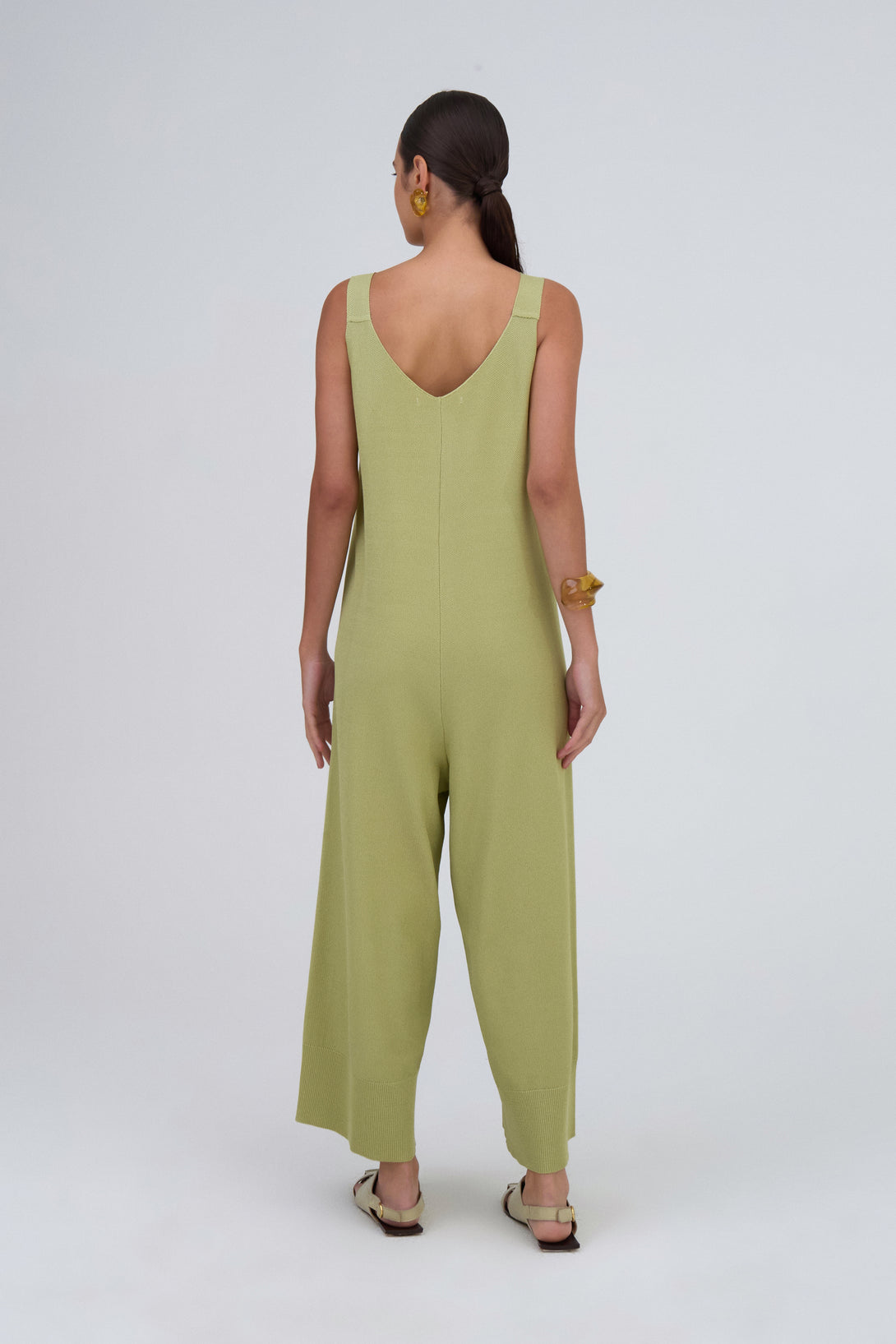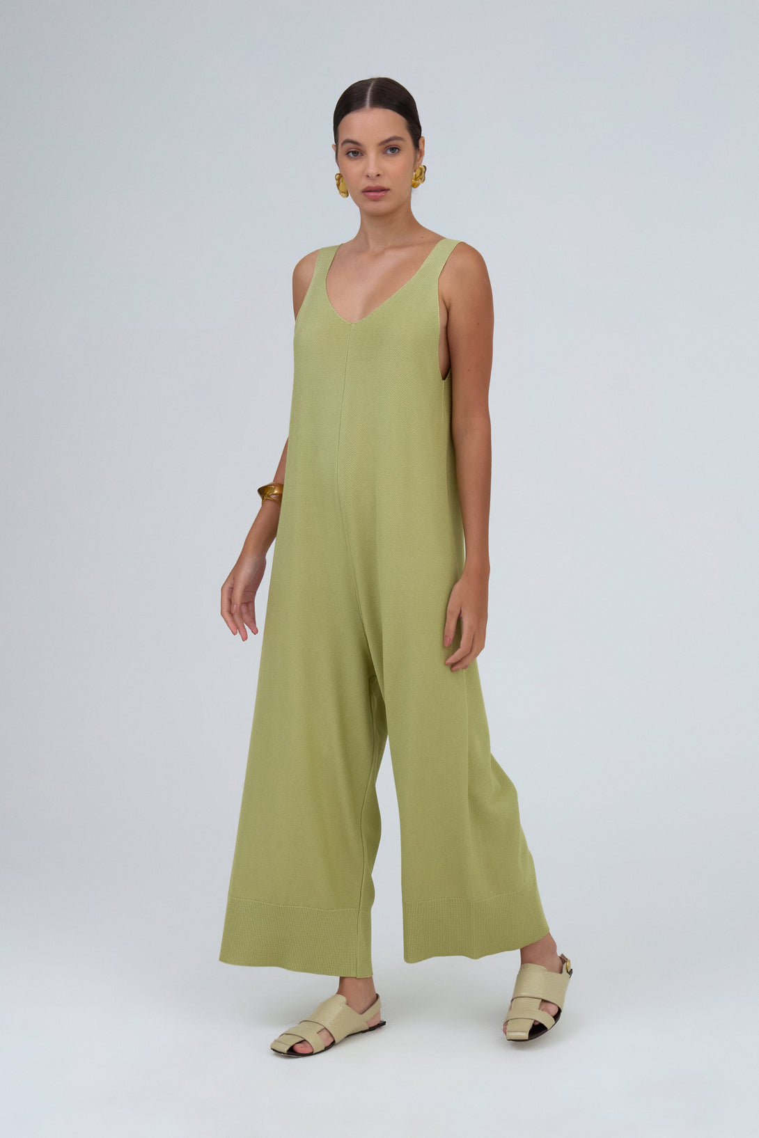 Macacão Com Barrado Em Tricot Piquet Avocado