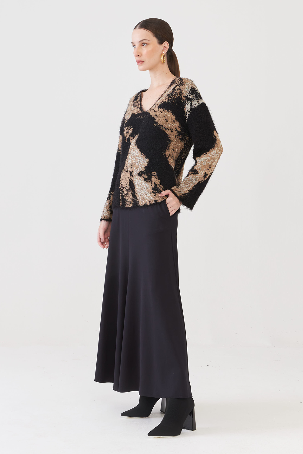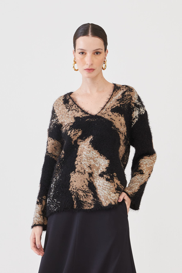 Maxipull Jacquard Felpudo Em Tricot Abstrato