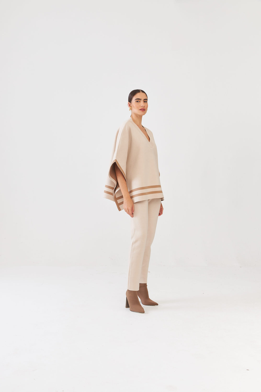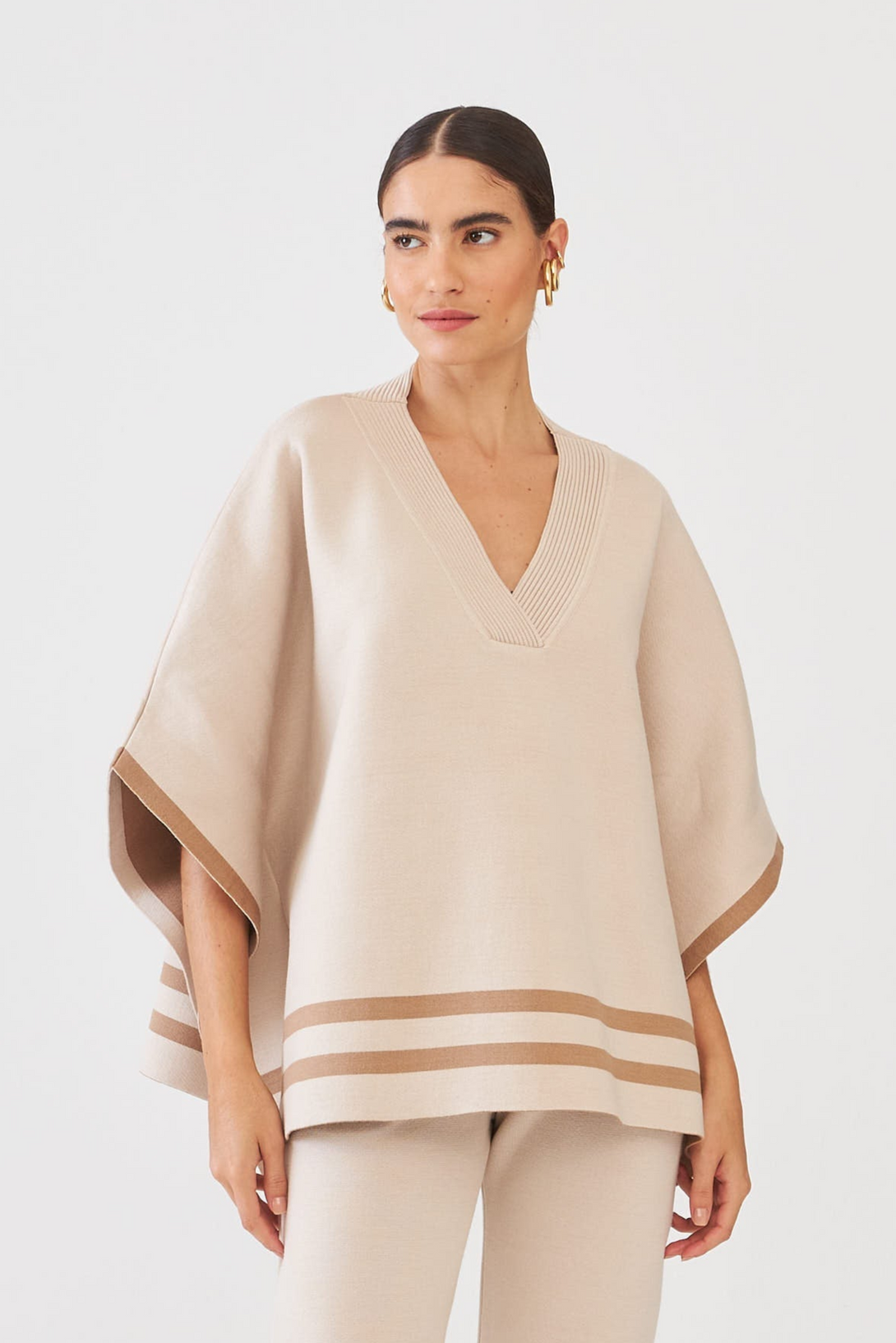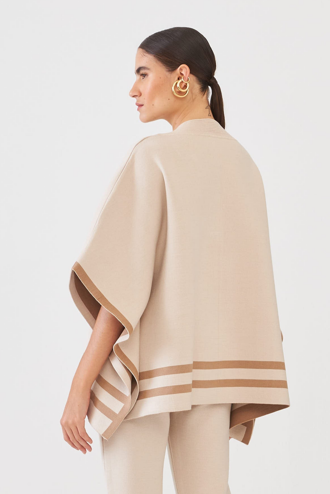 Poncho Barra Listras Bicolor Em Tricot Ninive/Camelo