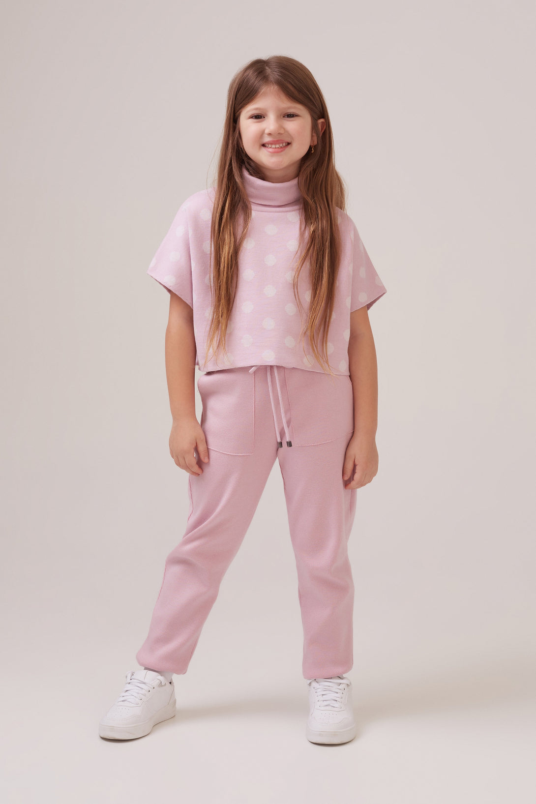 Poncho Infantil Dupla Face Jacquard Em Tricot Rosa Lilac
