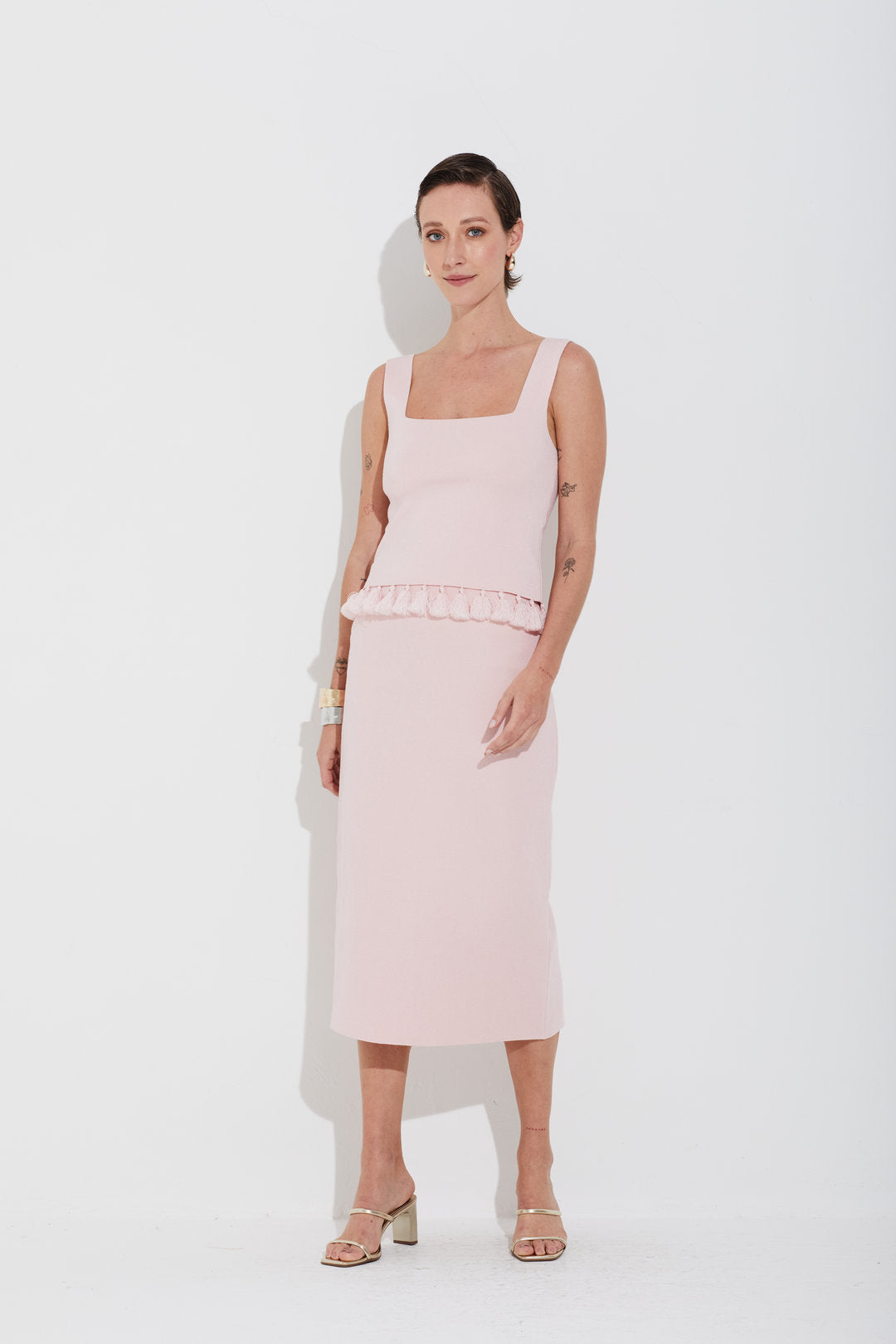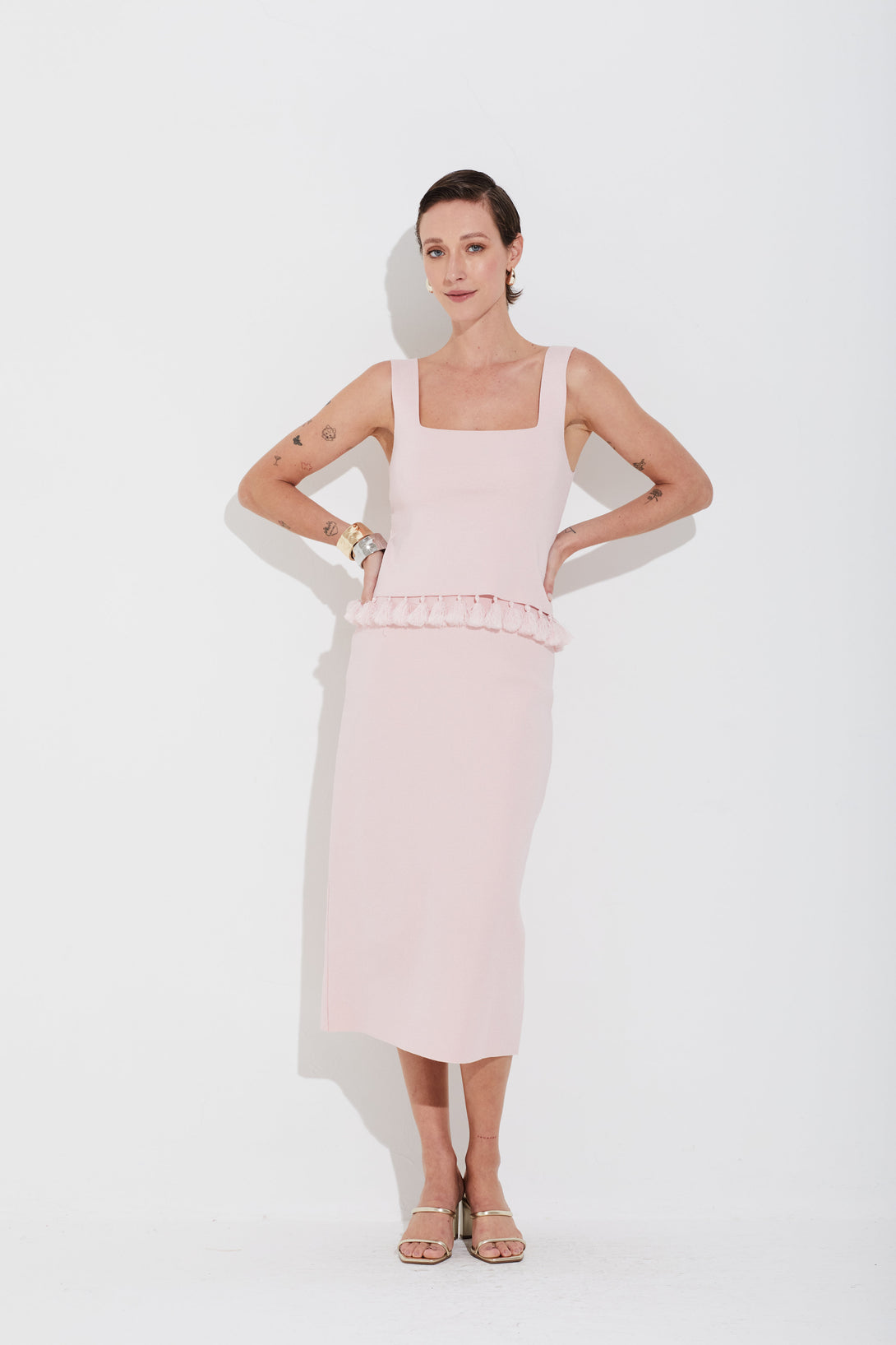 Poncho Sem Mangas Tricot Em Malha Cheia Com Franjas Quartzo Rosa