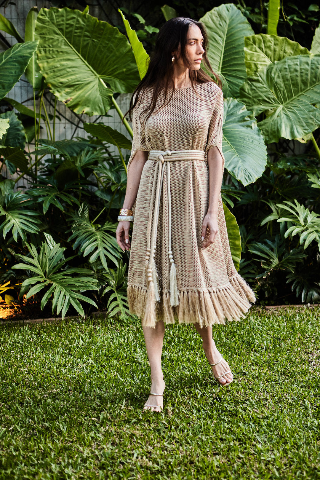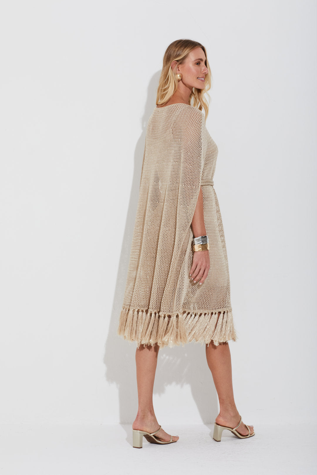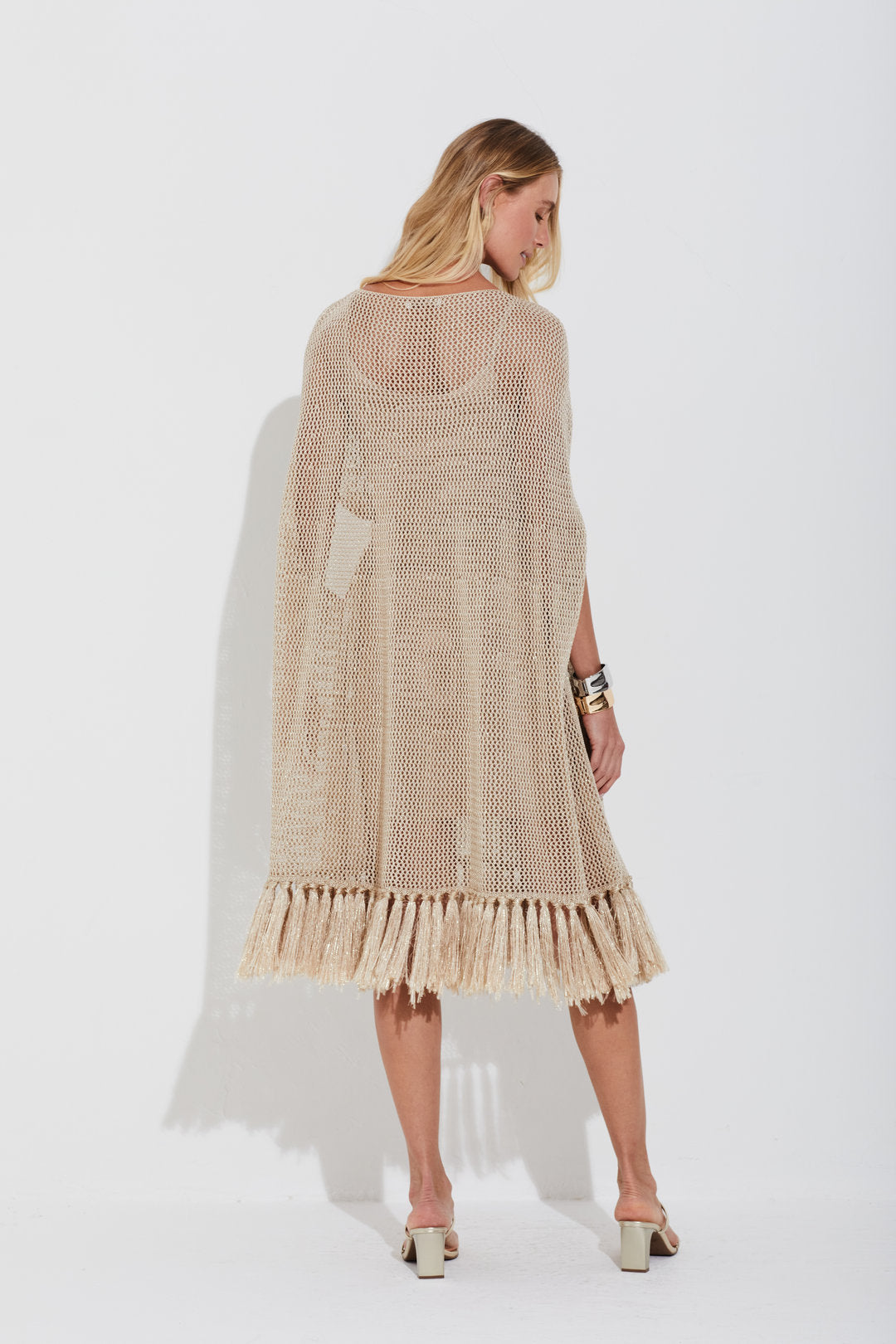 Poncho Tricot Telada Com Fio Torcido Dourado