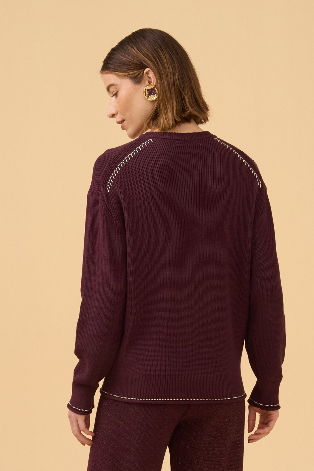 Pullover Amplo Com Detalhe A Mão Em Tricot Ameixa