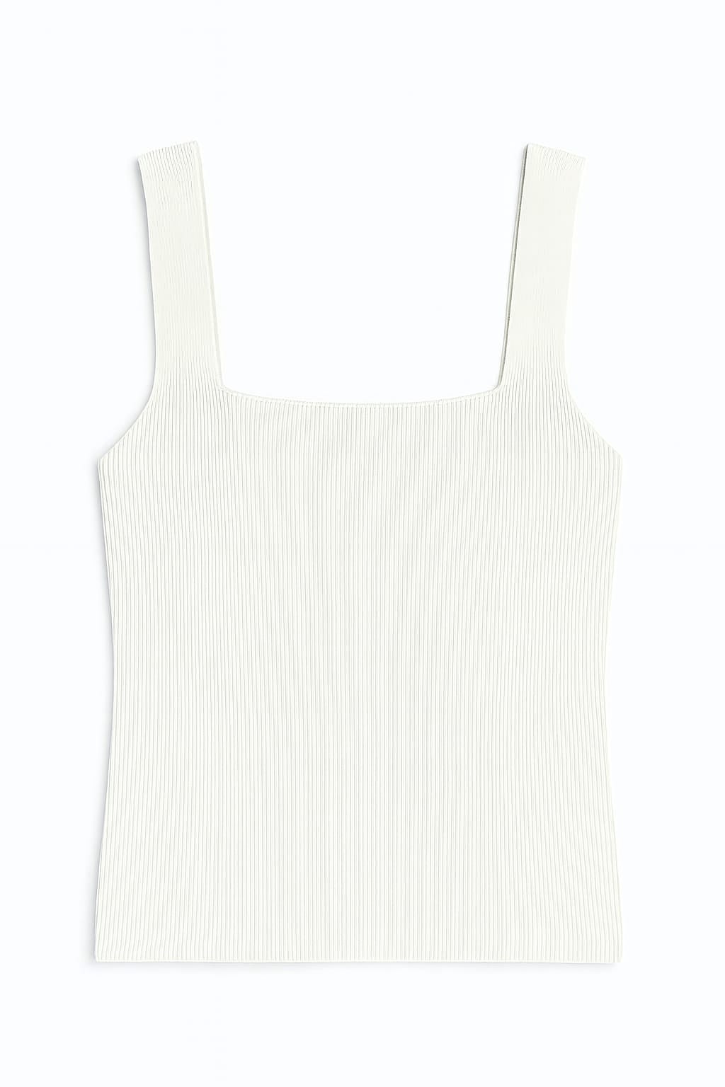OUTRAS CORES:: Regata Decote Reto Em Tricot Off White