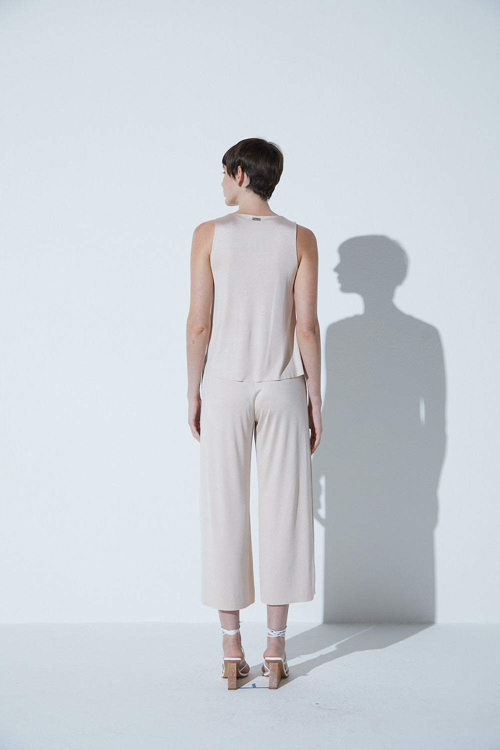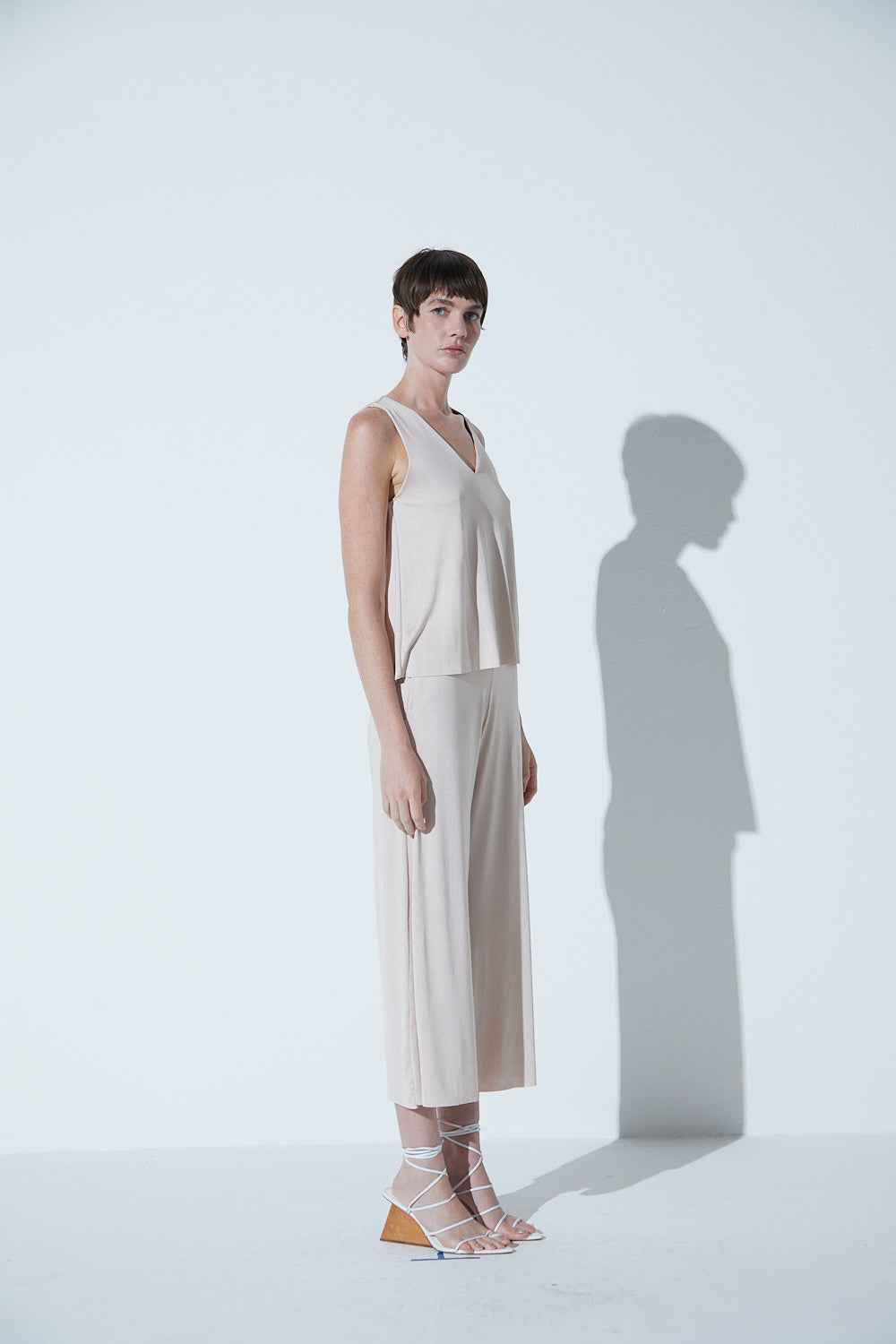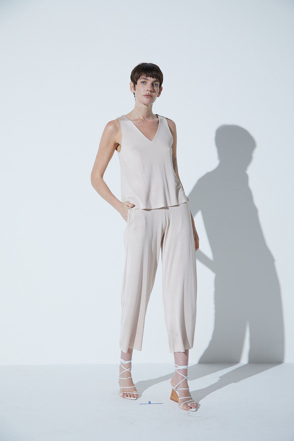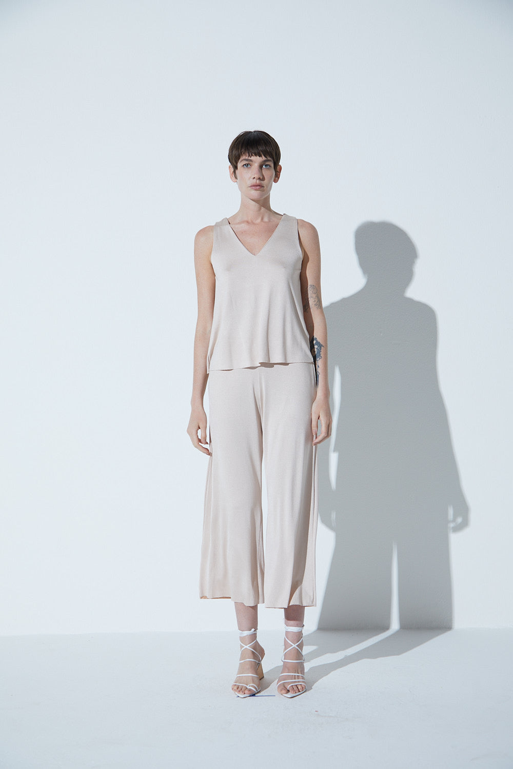 Esta regata em jersey possui um decote V em um shape solto, tornando-a moderna e elegante. As alças são largas para extra conforto, e o tecido jersey torna-a prática e ideal para dias quentes. Uma must-have para sua coleção de verão.